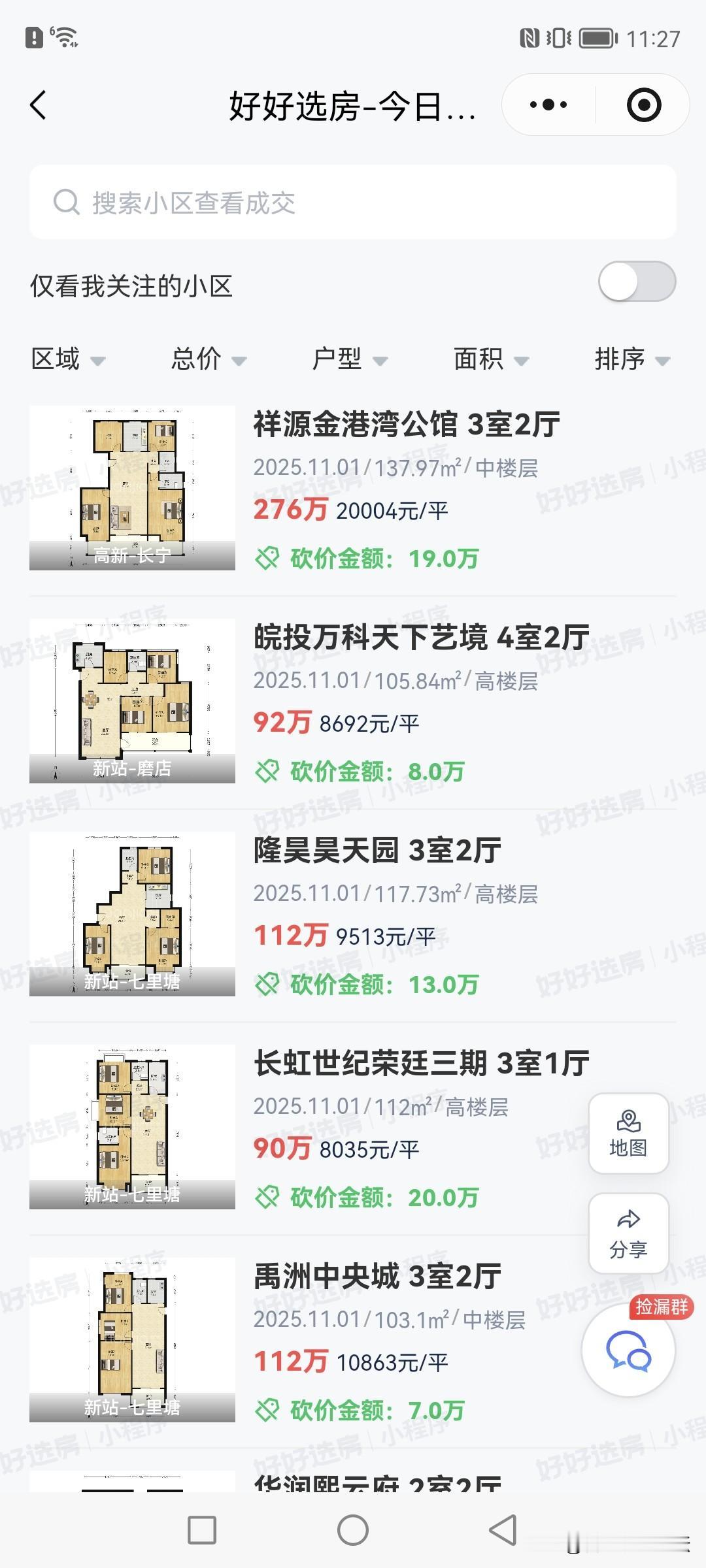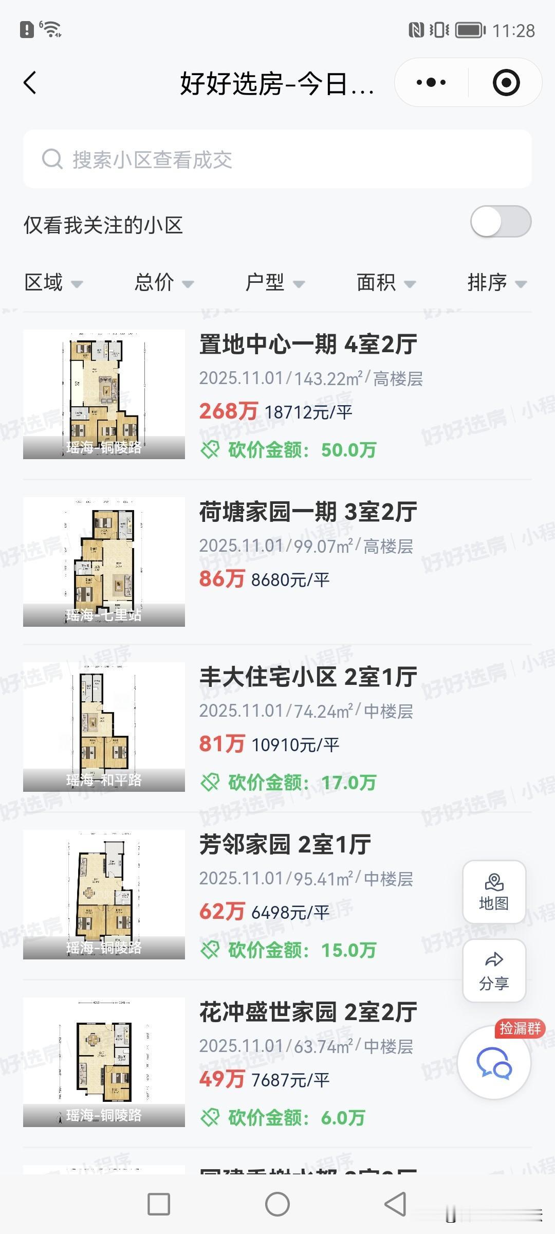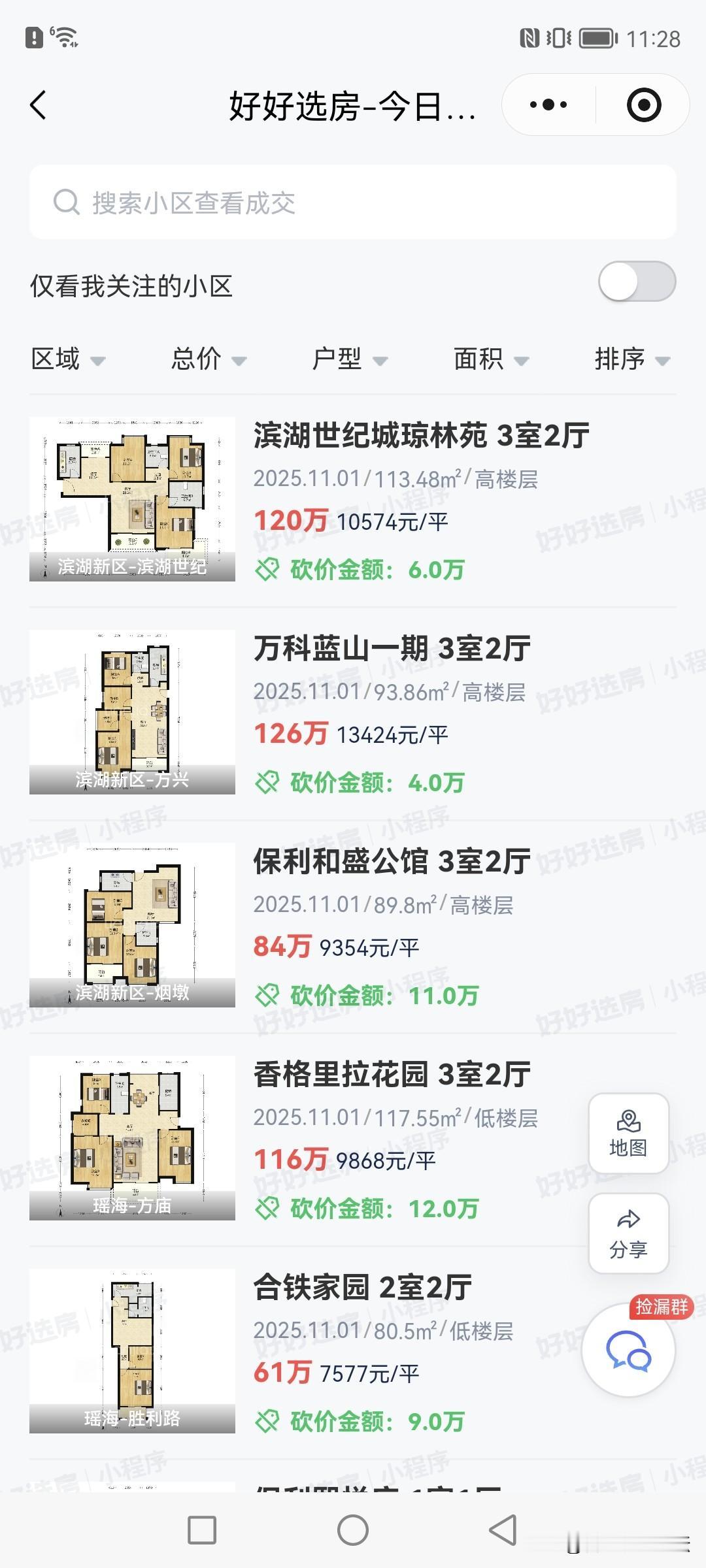 进入十一月份,合肥二手房部分成交的情况。还是西南边的二手房好卖,也是低总价的多,现在很多洋房也便宜了。 二手房选择面很广泛,最近还有挂的次新房也多,很多一天没住的,刚交房的。