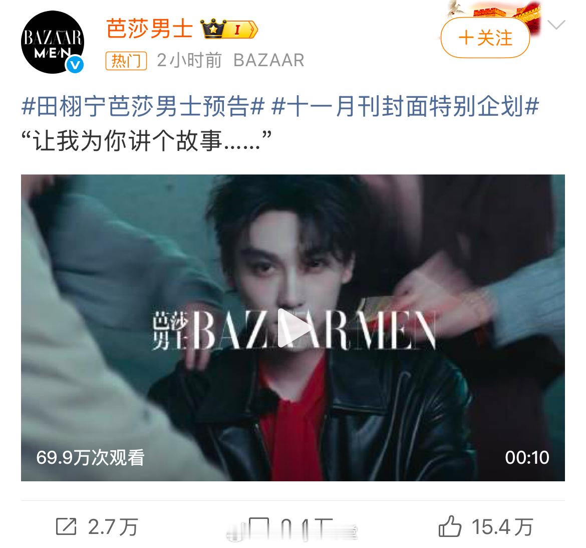 梓渝演唱会官宣VS田栩宁芭莎男士新预告,两人真的在巅峰相遇,争着下海不是没有原因的……去年这个时候,谁知道梓渝、田栩宁的名字