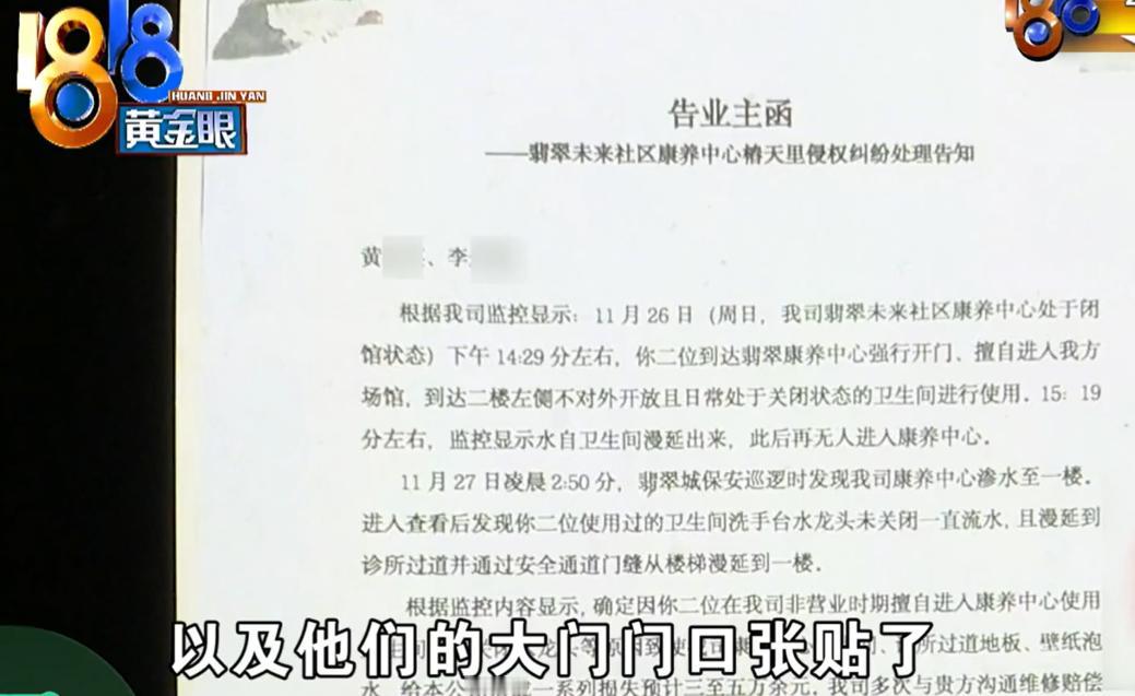 杭州一女子和婆婆出门逛街,期间由于尿急,跑到一家康养中心上厕所,2人看到下午1点到5点开放,所以2人放心大胆去上,结果,她们回家没多久,就被警察找上门,说他们上完厕所没关水龙头,导致地板、墙面都被泡坏,损失3-5万元,让她们赔偿!女子觉得自己很冤枉,不肯赔偿,双方闹得不欢而散。   杭州翡翠未来社区附近,李女士陪婆婆散步时突然尿急,望见小区门口的康养中心,婆婆熟门熟路提议去那应急,门口告示写着13点到17点开放,当时刚过3点,正处时段内。   康养中心门虚掩着,灯亮着没上锁,两人一拉门就进,二楼卫生间门也敞着,用完洗手、冲厕,确认关紧水龙头才离开。   谁能想到,几天后民警来电,说康养中心报警索赔3到5万,称她们没关水龙头泡坏地板壁纸。   民警先查清楚了,两人不存在非法闯入,可更糟的事在后头:康养中心直接在小区大门和李女士家门口贴了《告业主函》。   公告里把婆媳全名写上,说她们“闭馆期间强行开门”“用了不开放的卫生间”,还把漏水损失全算在她们头上,小区里议论纷纷,住了多年的婆婆出门都觉得抬不起头。   李女士丈夫气不过,跑去康养中心较真,他当场演示,这大门关紧后没密码根本打不开,所谓“强行闯入”纯属瞎说。   再看对方给的监控,14点29分两人进厕所,14点39分离开,之后再没人来,15点19分走廊出现水渍,凌晨2点50分保安拍了段十几秒视频,画面里水龙头开着。   但细看视频全是破绽:保安一进厕所就直奔水龙头,拍完就走,不像巡逻发现异常的样子,更关键的是,洗手池周围干干爽爽,要是水真流了近12小时,台面早该泡透了。   再顺着水渍找源头,根本不是卫生间,是一间叫“半夏”的理疗房,里面洗手池设备早老化了。   法院调解时,法官让康养中心拿水表数据,查那段时间是不是有异常用水,可对方死活不给,连句解释都没有。   李女士丈夫越想越不对劲:“最直观的证据藏着掖着,这不就是心虚吗?说不定是他们自己水管坏了,刚好撞见我们用厕所,就想找替罪羊。”   康养中心就咬着监控不放,说两人离开后没人再来,漏水跟她们脱不了干系,可按法律规定,谁索赔谁举证,光靠时间凑巧根本构不成证据链,这事儿拖了快两年,庭前调解没成,案子还在审。   其实明眼人都能看出问题,康养中心要是真把管理做到位,闭馆就锁好门,不开放的卫生间挂好警示牌,哪会有这种误会?出了事不先查自己设施老不老化、管理漏不漏洞,反倒急着贴告示实名指责居民,既侵犯隐私又伤了邻里情。   现在李女士一家就等法院裁决,手里攥着视频疑点、水渍来源分析这些证据,她们不怕查,就怕不讲理,上趟厕所要赔几万,得拿出实打实的证据才行,总不能让普通人平白背锅。