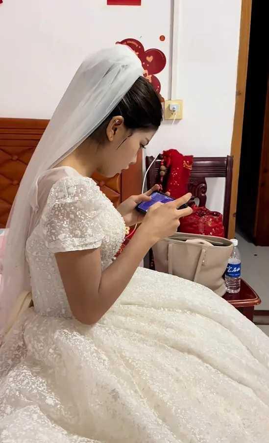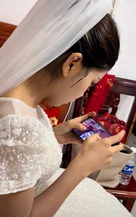 门外人声鼎沸,门内新娘穿着结婚礼服,还在专心致志的用手机打着游戏。 在江西某地,新郎一早就带着迎亲队伍来接新娘了。 他推开门一看,只见新娘穿着婚纱,还在全神贯注的玩着闯关游戏。好像今日出嫁的不是她,门外的喧哗与她无关。 新郎也是一脸溺爱的看着新娘。伴郎催着说,吉时快到了。 新郎却不急不忙地说,还有时间,别慌。 直到新娘闯关成功,她才放下手机。 亲友也是乐坏了,说,还是第一次见到这么淡定的新娘。