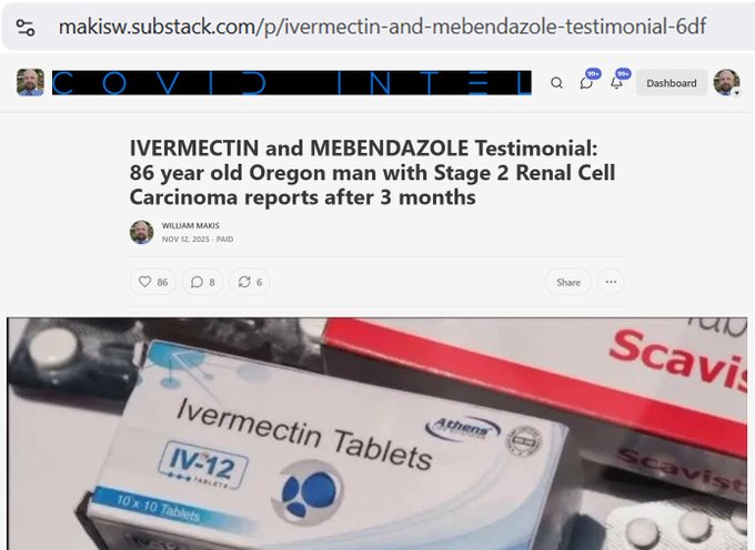 最新文章:伊维菌素和甲苯咪唑治疗案例:一位86岁俄勒冈州男性,患有二期肾细胞癌,三个月后汇报病情癌症患者使用老药新用药物治疗没有年龄限制! 😃故事:一名86岁的俄勒冈州男子患有二期肾细胞癌他服用了以下药物,持续了3个月:伊维菌素 100 毫克/天甲苯咪唑 1000 毫克/天结果:肾脏肿瘤从 2.7x1.5cm 缩小到 2.7x0.9cm(根据 Grok 的测量,肿瘤体积减少了 64%)。“没有改进”来自患者家属:“医生非常满意,并计划一年后带XXX(病人)去做新的核磁共振检查。”来自一位一窍不通的肿瘤科医生:( 😃“好消息。核磁共振检查未发现肿瘤复发迹象。我们计划一年后再做一次核磁共振检查。”是的,就是这么简单。我拥有全球最大的伊维菌素癌症患者群体。我们在癌症治疗领域处于最前沿。NEW ARTICLE: IVERMECTIN and MEBENDAZOLE Testimonial: 86 year old Oregon man with Stage 2 Renal Cell Carcinoma reports after 3 monthsThere is NO AGE LIMIT for cancer patients getting help from repurposed drugs! 😃STORY:86 year old Oregon man with Stage 2 Renal Cell CarcinomaFor 3 months he took:Ivermectin 100mg/dayMebendazole 1000mg/dayResult:Kidney tumor shrunk from 2.7x1.5cm to 2.7x0.9cm (64% tumor volume reduction according to Grok)."There is no enhancement"From patient's family:"doctor is very satisfied and plans on checking with XXX (patient) in another year with a new MRI"From clueless Oncologist: 😃"Great News. No concern for tumor recurrence on MRI. Let's plan for another MRI in a year."Yes, it's literally THAT EASY.I have the world's largest Ivermectin Cancer Clientele.We are at the cutting edge of Cancer Care.