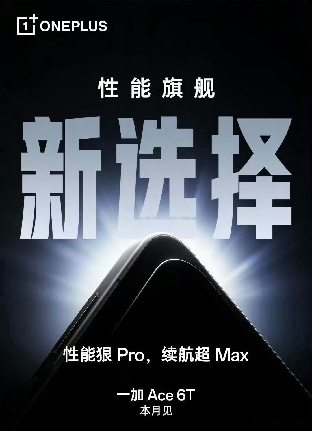 一加 Ace 6T 大家期待吗?首发8Gen5、165Hz 屏幕,续航性能和体验方面都挺强悍,而且据说适配和平精英,游戏档又有新选择了。