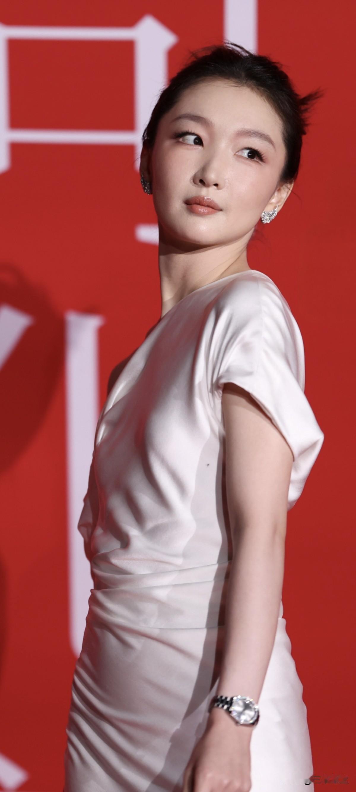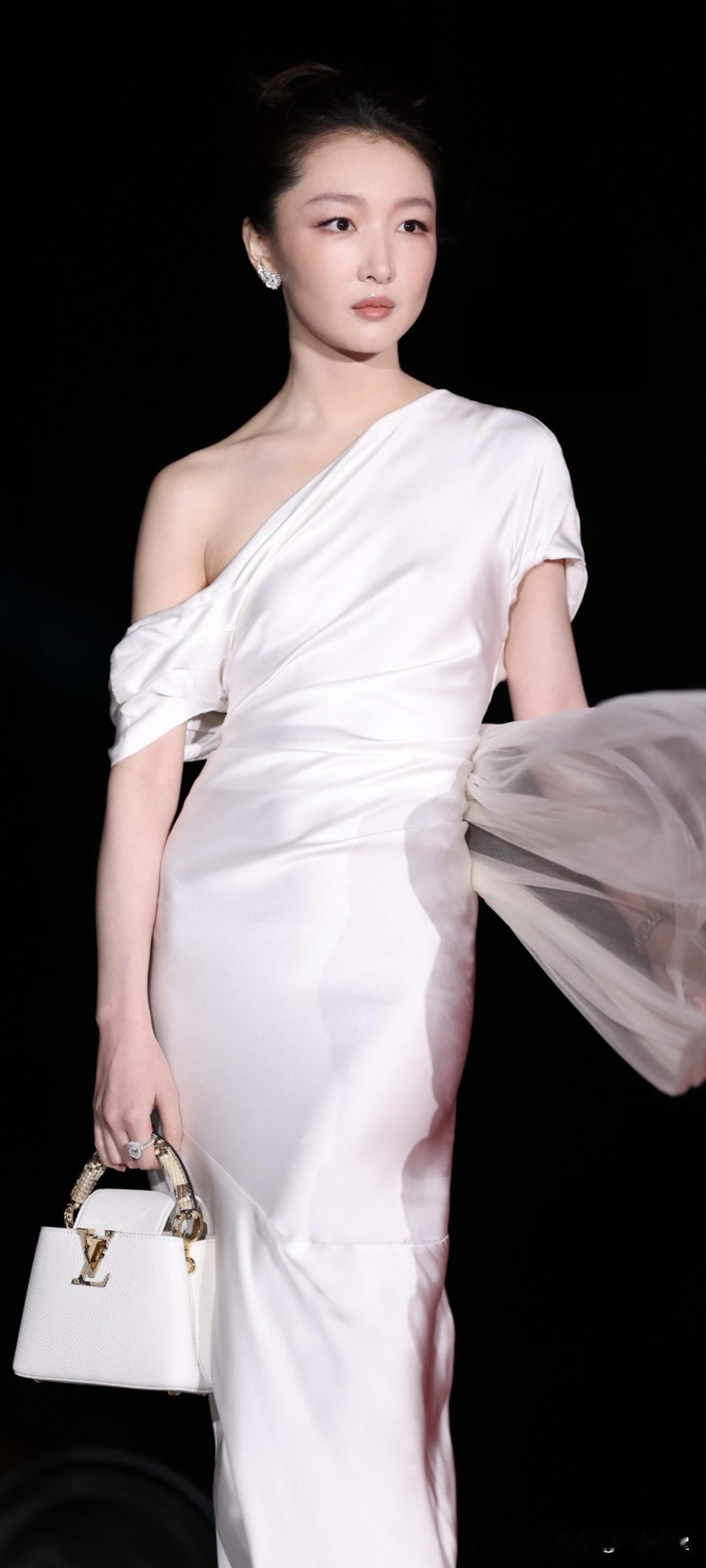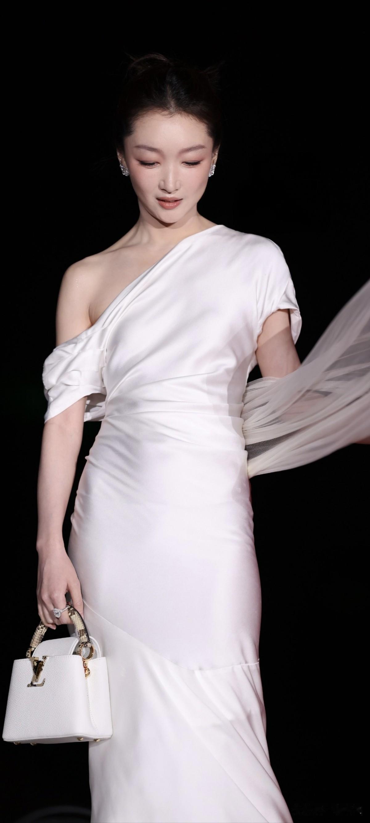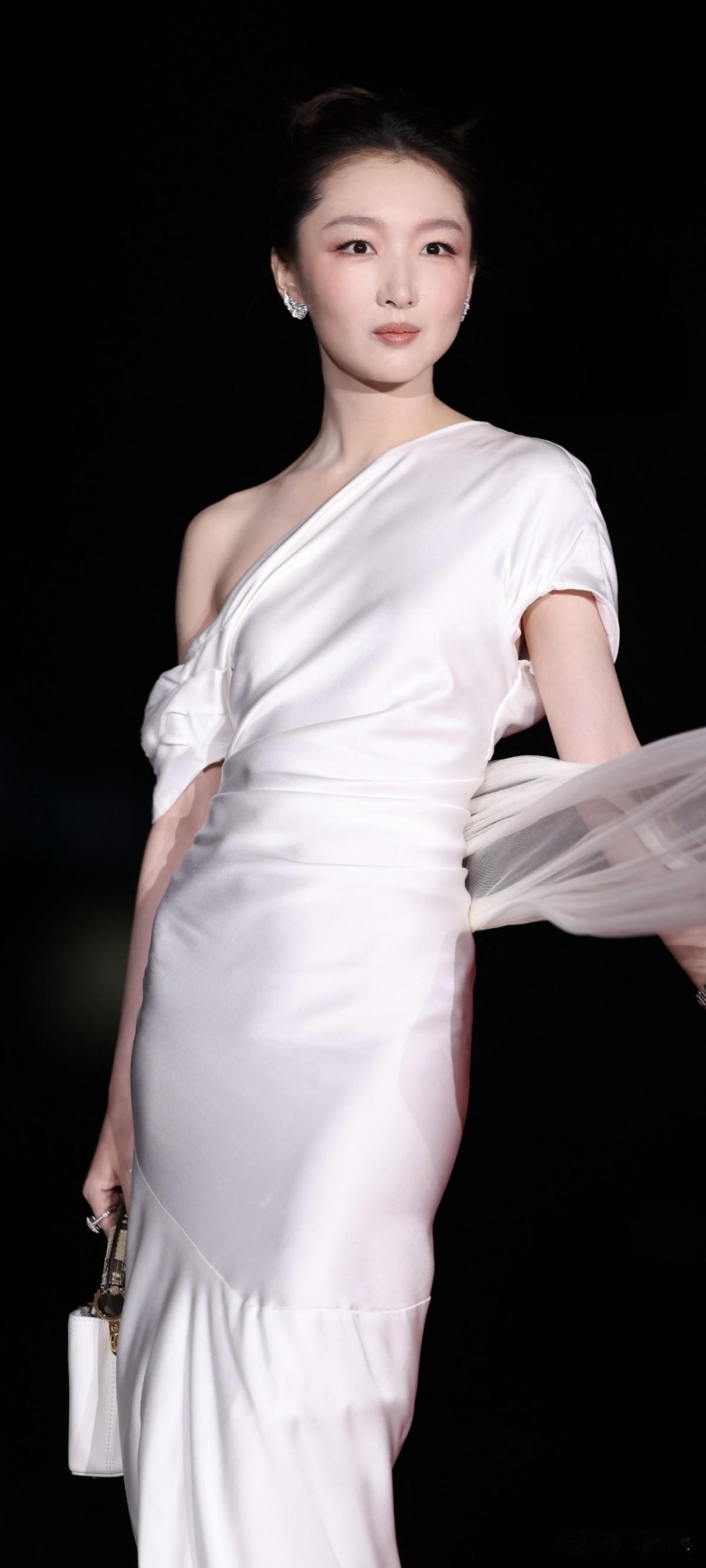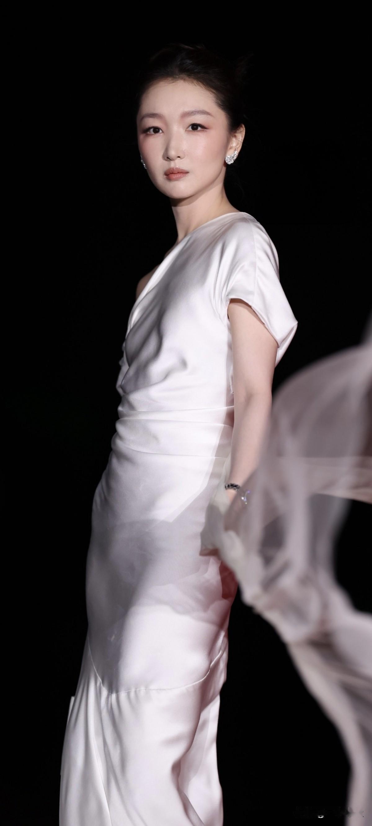 周冬雨栩栩华生红毯视频加生图,白裙好优雅,纱好会飘,夜色背景的那几张拍得真好。