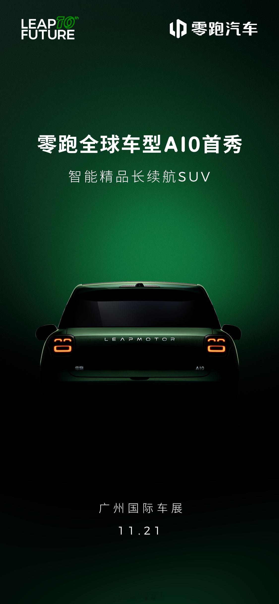 零跑官宣 A10 广州车展首秀关键词:「全球车型」、「智能精品长续航」。