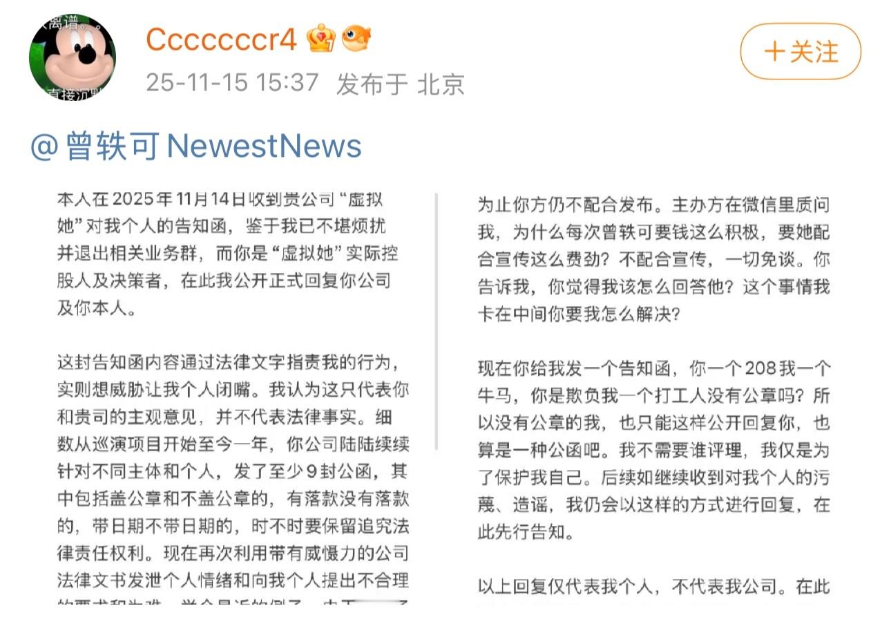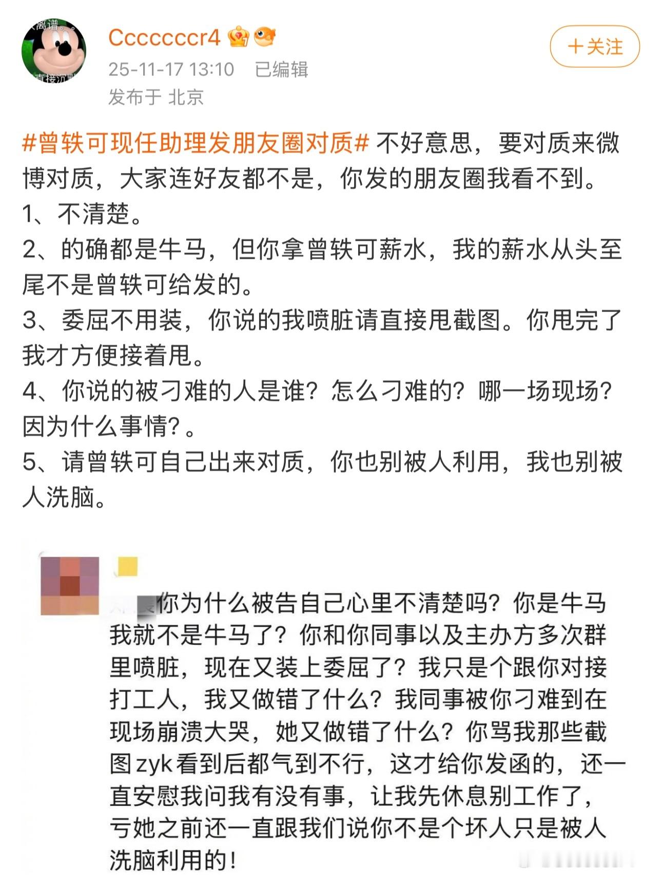 额滴天啊。。曾轶可前工作人员发微博多次控诉程收到了个人告知函,现任助理也出现发朋友圈反控对方抹黑了,到底咋回事啊 目前焦点是私联粉丝 但临上场不演了也很严重啊…等待具体证据和司法介入吧🤔