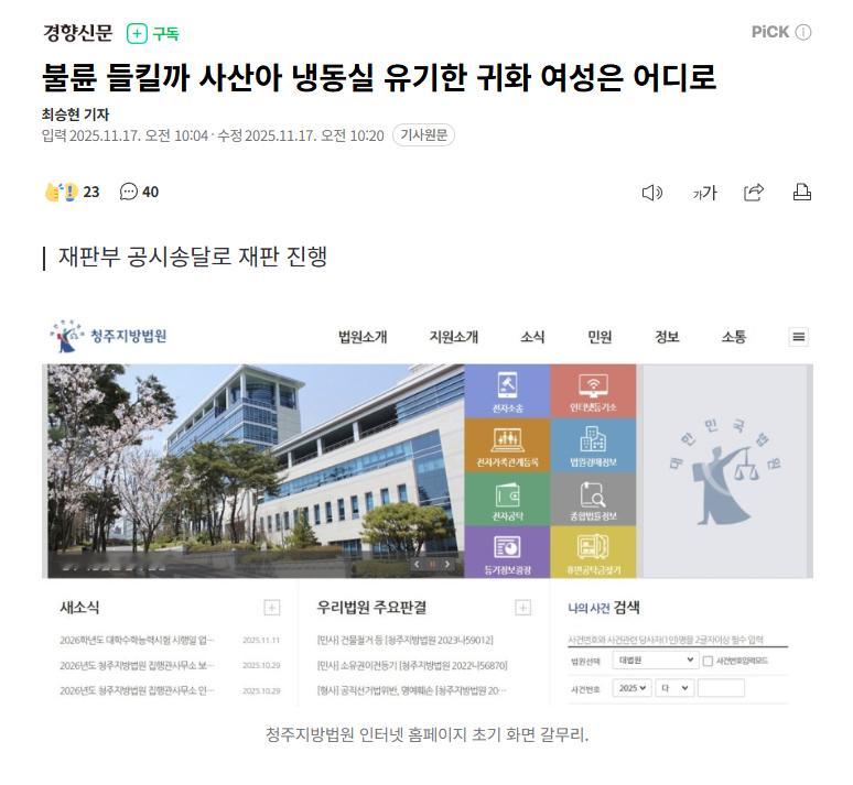 【入籍韩国的越南女性担心婚外情暴露,将死胎藏进冰箱后失踪】 因担心婚外情事实暴露,涉嫌将死胎弃置于冰箱冷冻室且被不拘留起诉的入籍韩国的越南女子A某(32岁)目前行踪不明。因此,清州地方法院正通过公示送达的方式进行审判。据17日法律界消息,清州地方法院刑事4独任庭试图从去年11月至今年1月,共四次向因遗弃尸体嫌疑被不拘留起诉的A某送达起诉状,但均未成功。通常的程序是,一旦提起公诉,起诉状会送达被告人,被告人则需向法庭提交对此的意见书。但由于在最初登记的居住地无法确认A某的下落,导致起诉状送达失败。审判部判断A某事实上已经潜逃,遂于今年3月依职权签发了拘捕令,但负责执行令状的检察机关也未能掌握A某的行踪。审判部最终于上月决定以公示送达的方式进行审判。此后,在起诉一年后的本月13日,在A某未出庭的情况下进行了首次审判。公示送达是指在送达对象下落不明时,法院通过公告栏或官报等刊登内容,视为已送达的方式。A某涉嫌于去年1月15日,在忠清北道地区的家中卫生间独自产下死胎(孕期21~25周的胎儿)后,将尸体弃置于冰箱冷冻室,因而被不拘留起诉。大约一个月后,正在打扫的婆婆偶然发现了尸体。A某于事发当天晚上驾车逃离,次日在全罗南道罗州的高速公路上被警方逮捕。据悉,A某在当时警方调查中陈述:"因担心长期分居的丈夫发现自己婚外情的事情,所以将孩子藏在了冷冻室。"检察机关认为A某逃亡风险很大,曾申请了对她的拘捕令,但当时法院以"调查过程中态度配合,且无再次逃亡之虞"为由驳回了申请。
