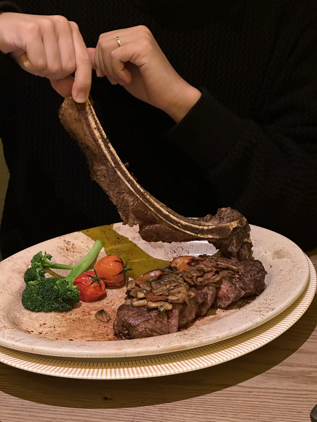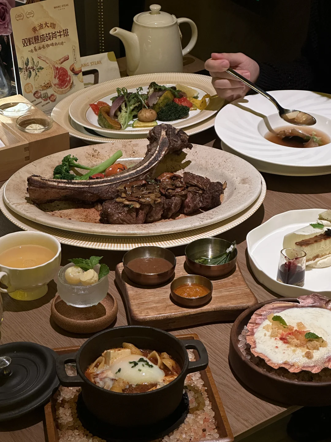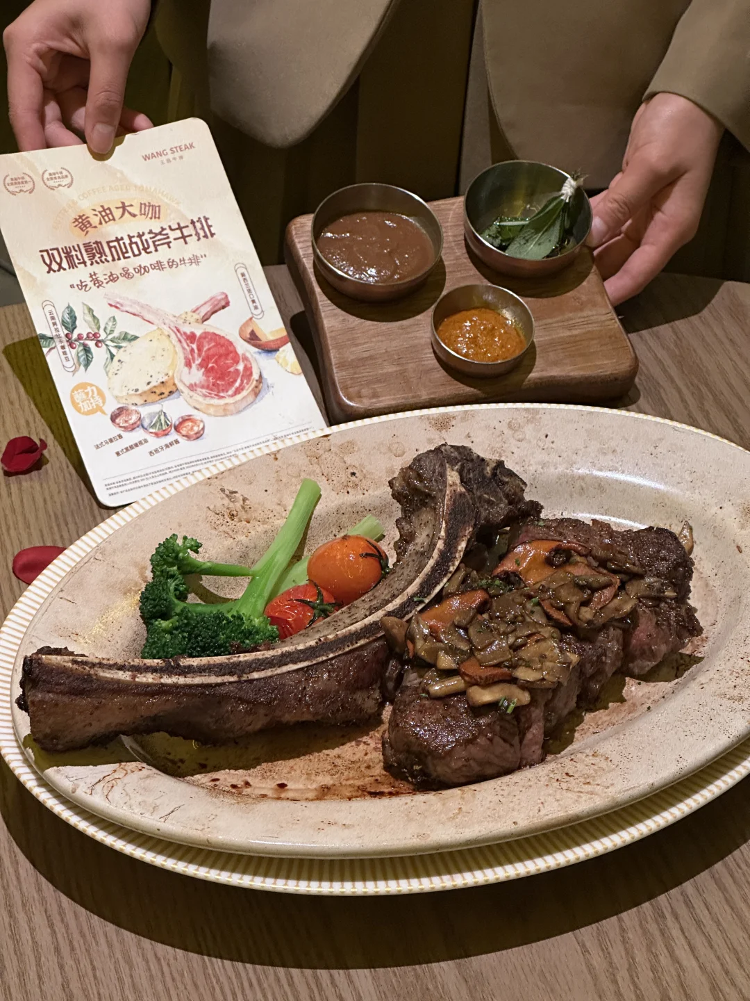 个人最爱这家西餐厅 名不虚传的战斧牛排专家 琶洲新店露台景色很美啊 能望猎德大桥 看广州塔 新品战斧牛排吃了 用黄油和咖啡豆熟成 品质果然不错👍🏻