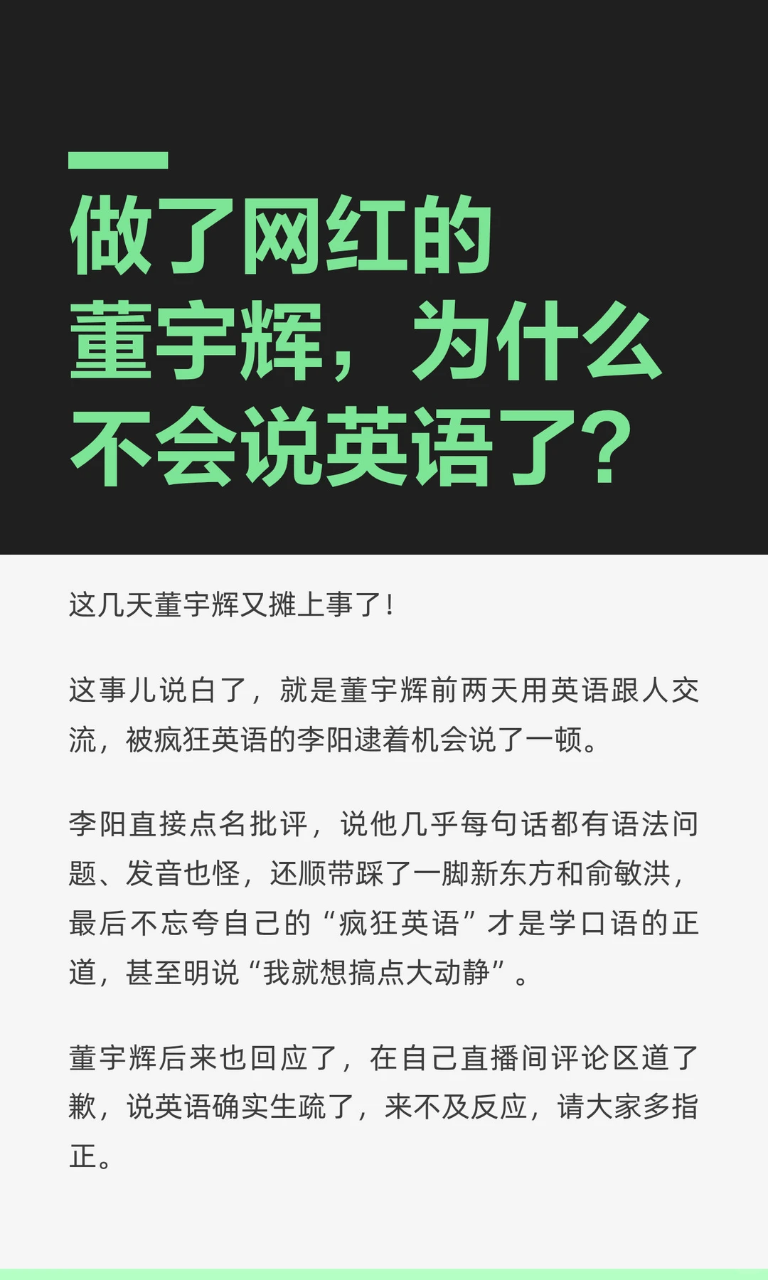 做了网红的董宇辉,为什么不会说英语了?