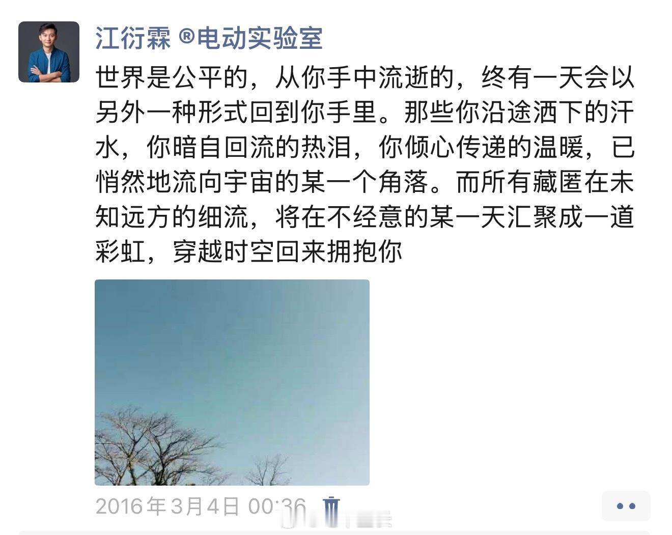 为人与善,日行一善,不求回报,都会在未来的某一天的不经意间给你回报。刚才一个老大哥给我发信息,约我和一个厂商领导一起吃饭,突然想到了这句话。顺便翻看了一下自己2016年的朋友圈,现在看来是有些鸡汤了。不过,兄弟们,努力确实有用。你们都可以给我介绍客户吗?我除了好的那些,都不太好。