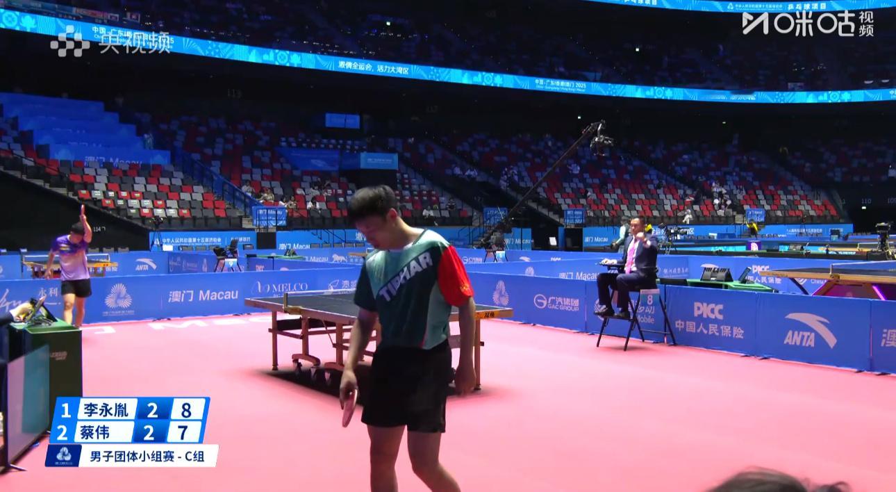 2025大湾区全运会男子团体C组青海2-2浙江李永胤3-2蔡伟(11-9 11-5 6-11 7-11 11-9)德甲高手真是藏龙卧虎呀