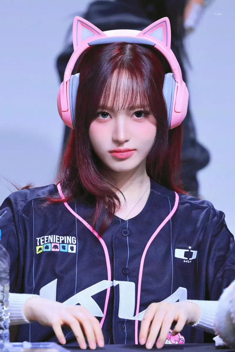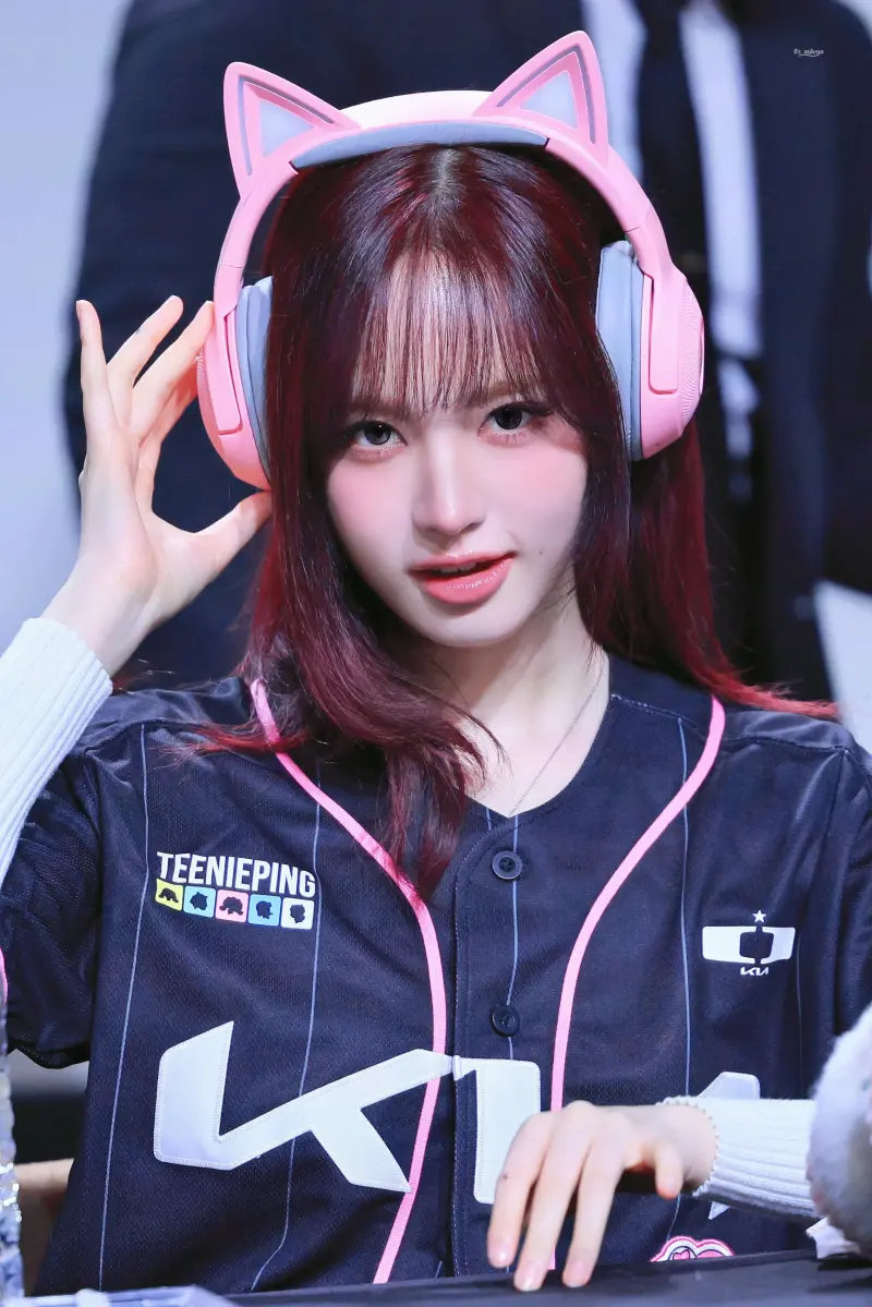 韩国女团成员张元英穿T1五星队服,Liz穿DK棒球服,有一说一,这两人穿这外套是真好看!