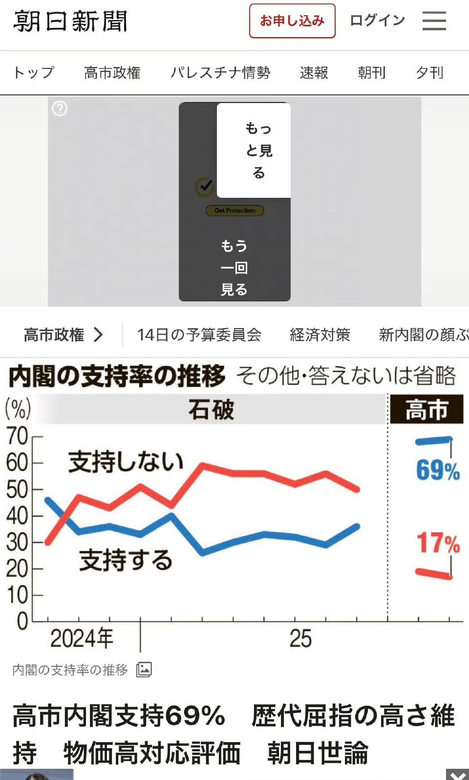 高市撤不撤回涉台言论,成为中日输赢的指标。中日谁输谁赢的另一个指标是薛领事会不会被驱逐。 如果高市早苗宣布撤回她的涉台言论,那日方就输了,中国就赢了。如果她能稳得住,涉台言论就不收回,日本就不输为赢,中国就不赢算输。 如果日方既不撤回高市早苗的涉台言论,又将中国驻大阪总领事薛剑驱逐,那就是日本大赢了,哪怕经济上被中国疯狂报复损失惨重,那也是日本赢了。如果既不能迫使日方撤回高市的涉台言论,又不能保住薛领事不被驱逐,那中国的外交与政治威望就会受一大挫。 中国已开始对日本进行经济施压,就看日本政治有没有耐性了,总感觉民主国家的领导人就是一群纸老虎,都有软骨病。 15、16两日,朝日新闻对高市内阁支持率做了一个调查,高氏内阁的支持率不降反升,高达69%;而不支持率降到了17%,这调查数据会增强高市早苗强硬下去的决心。 是不动如山,还是棒敲就散,其实对高市内阁来讲,这两种可能性都存在的。 架既已吵得惊动世界,那就得分个输赢出来,因为关乎国家体面。