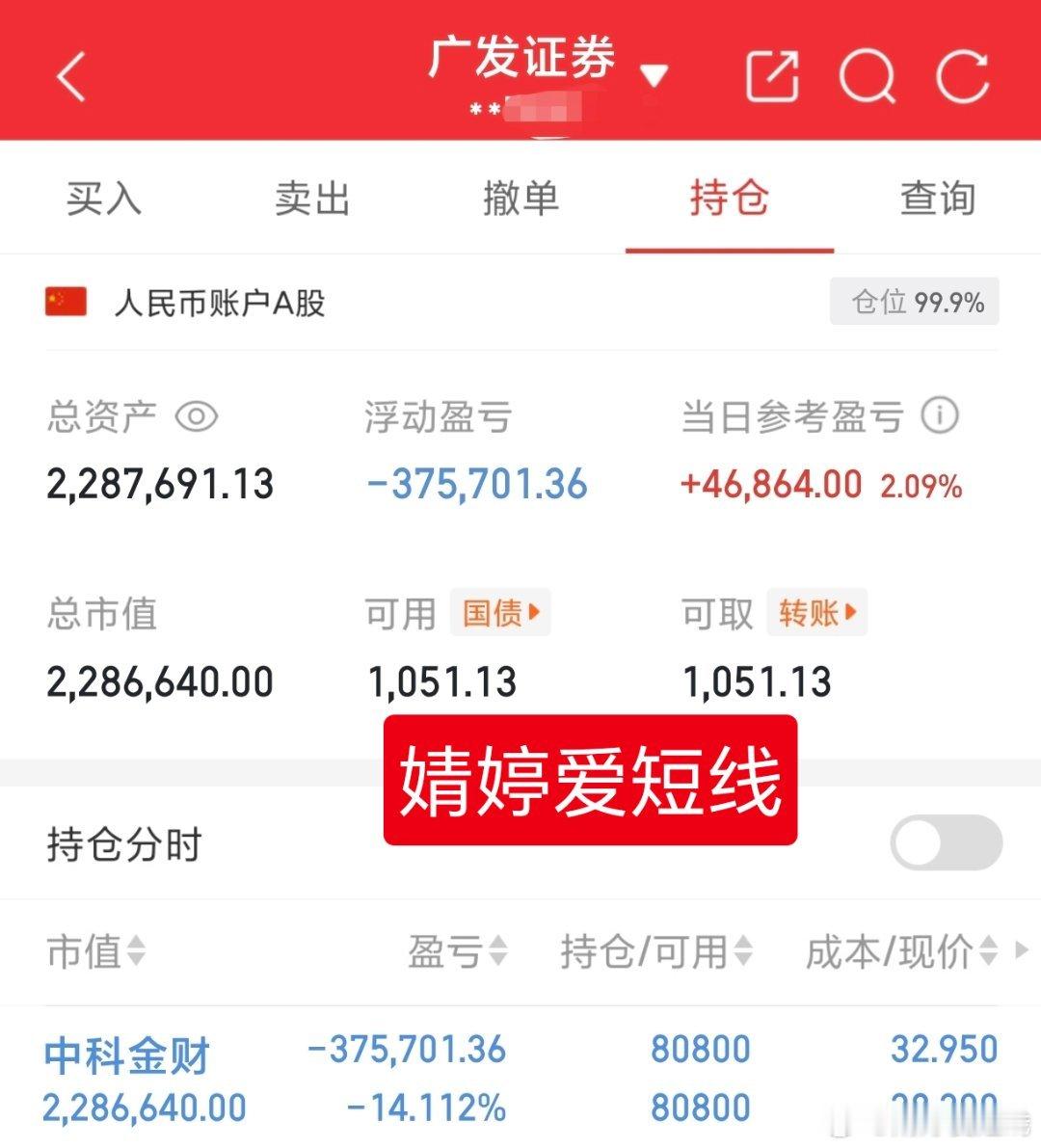 继续等待……30万本金实盘记录(第344天)目前资金:2287691.13元今日持有:中科金财我会把每天实盘记录下来,我相信实盘肯定一直往前冲,希望各位股友支持婧婷!点赞富一生,评论888票票长虹!特别声明:这只是我个人的操作记录,不作为任何投资建议,更不是劝你们跟买!股市有风险,投资需谨慎!!!🙏🙏🙏