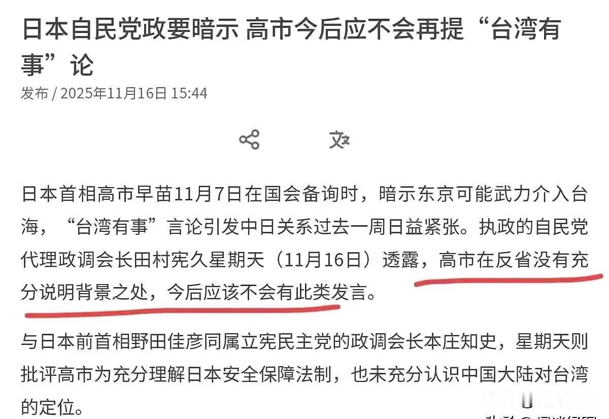 日本执政党自民党高官田村表示表示高市早苗正在反省中,以后不会再有这种言论了。与此同时,高市早苗内阁的官房长官木原稔表示正在努力寻求机会,让高市早苗在南非G20会议期间同我们代表团会面。看上去,高市早苗知道事情的严重性了,在反省中,试图弥补自己犯下的大错。但是,日本的侵略性是不会改变的,他们就是地区最大的不稳定因素,因此,我们要真正的“做好准备,坚决捍卫和平与正义”。