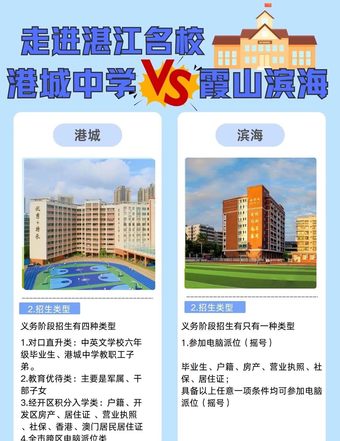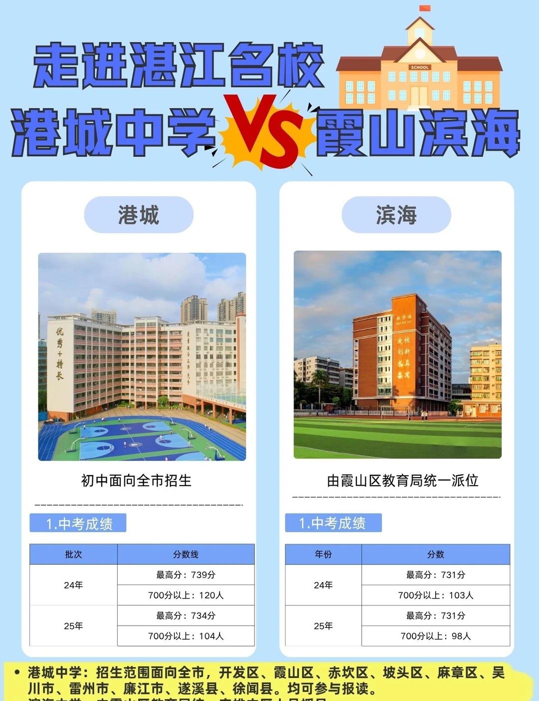 | 港城中学 vs 霞山滨海学校 湛江家长们择校是不是头都大了?港城和滨海到底怎么选?今天把中考成绩、招生类型、收费标准、办学范围扒得明明白白,看完直接省下 N 小时纠结! 🔥 中考成绩大 PK 港城中学: 2024 年最高分 739 分,2025 年 734 分;700 分以上 24 年 120 人、25 年 104 人,高分段实力很能打! 滨海学校: 24、25 年最高分都是 731 分;700 分以上 24 年 103 人、25 年 98 人,区属学校里算顶尖梯队~ 🎯 招生类型差异大 港城中学(四种类型任选): ① 对口直升(中英文学校毕业生、教职工子弟); ② 教育优待(军属、干部子女等); ③ 经开区积分入学; ④ 全市跨区电脑派位。 滨海学校(就一种超简单): 只要符合户籍、房产、社保、营业执照、居住证任一条件,就能参加霞山区电脑派位摇号~ 💰 学费开销对比 港城初中: 适合预算充足的家庭。 滨海初中: 性价比直接拉满! 🌍 招生范围一眼懂 港城:初中面向全市招生,不管你是开发区、吴川、雷州的娃,都有机会冲市区学籍! 滨海:由霞山区教育局统一派位,本地娃摇号优势更明显~ 总结建议👇 选港城:追求顶尖成绩、需要跨区读名校、家庭经济条件允许的,闭眼冲! 选滨海:霞山本地娃、看重性价比、想走派位路径的,直接锁死! 还有啥想了解的学校?评论区喊我,下期扒给你看~👀 湛江教育 湛江升学 湛江民办学校 中考成绩 湛江港城中学 湛江市霞山区滨海学校 小升初 积分入学 择校