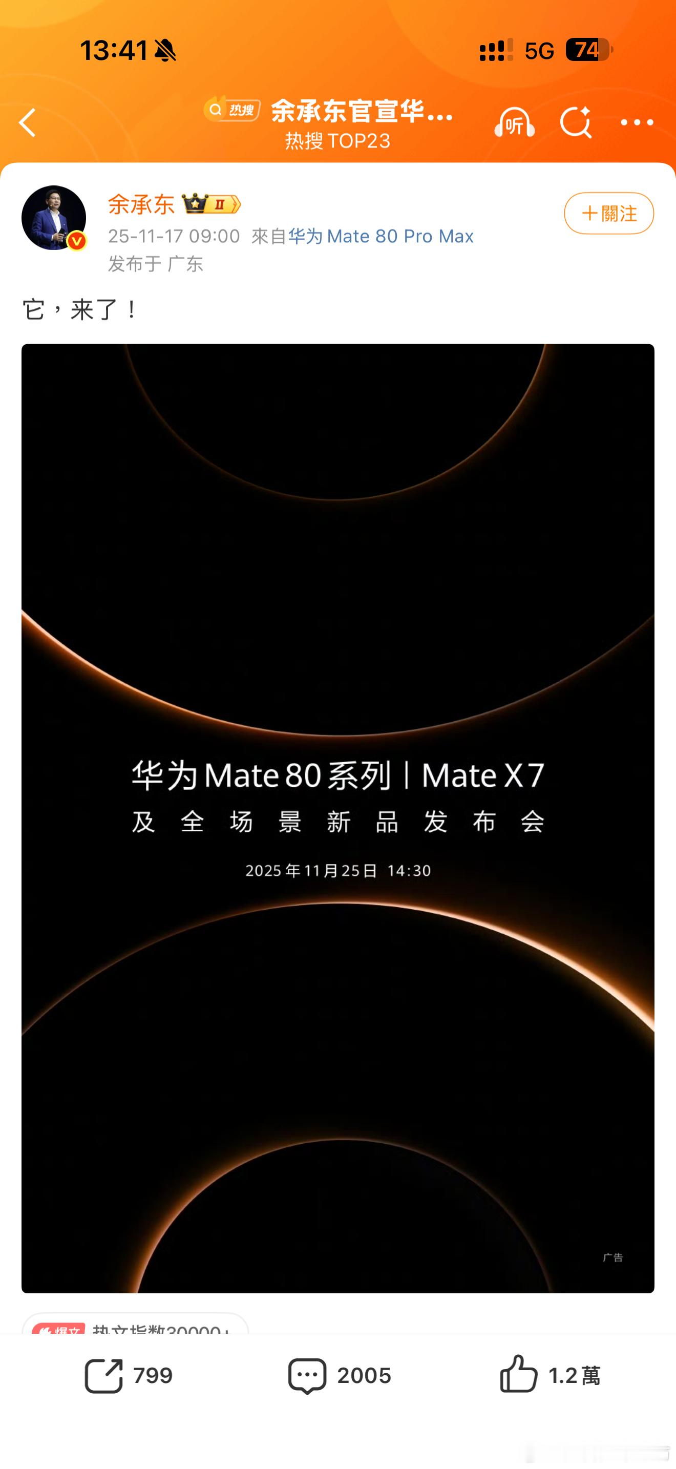 华为整体更新步伐好快Mate 70Air才刚上几天耶Mate80系列和Mate X7就要来了从余承东微博的“小尾巴”来看Mate80系列命名也采用了Pro Max后缀据说Mate80全系采用直屏设计后盖似乎也加入了类似Magsafe的圆环磁吸生态