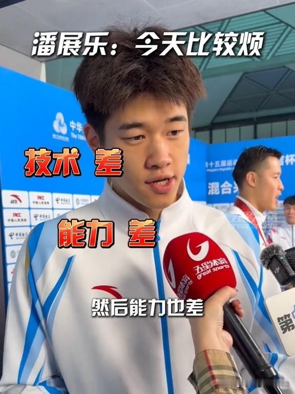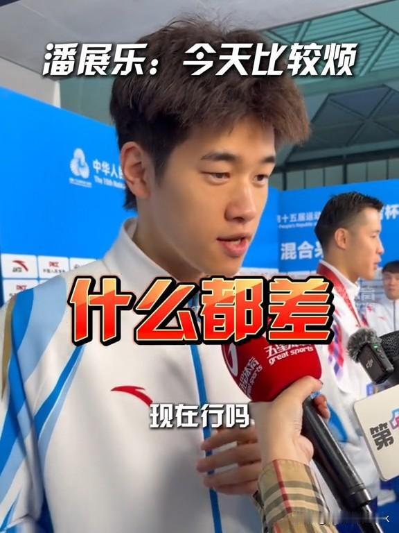 潘展乐:我什么都差行了吧!这个记者也真是不会问问题[捂脸] 你说你惹这孩子干嘛,潘展乐虚心一下,说自己有不足,记者非要打破砂锅,问到底,非要潘展乐说说自己哪里不足 潘展乐:非要问这么深吗?我技术差,心态差,什么都差,行了吧[捂脸] 给孩子问emo了,这孩子本来就是直来直去的性格,有啥说啥,这种问题适合问汪顺,不适合潘队