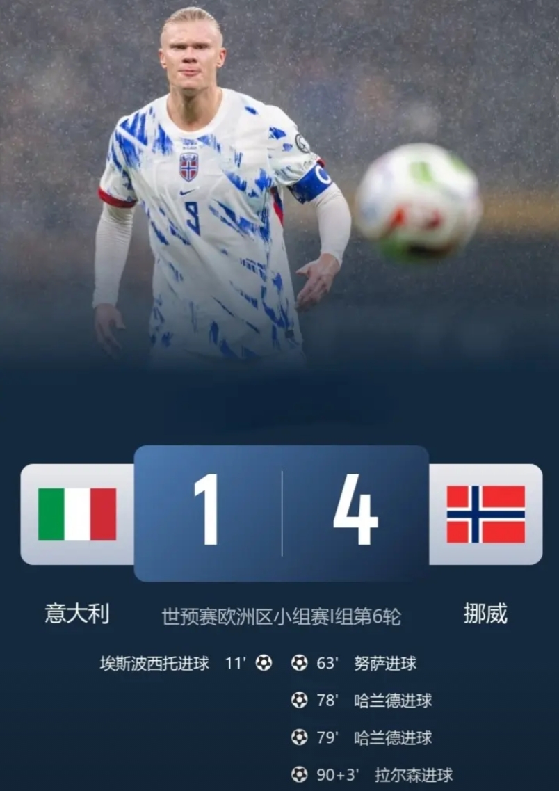 意大利的奇迹没有出现,挪威的世界杯没有意外,以现在意大利的实力,去了世界杯小组赛也出不了线,而挪威至少有8强的实力。