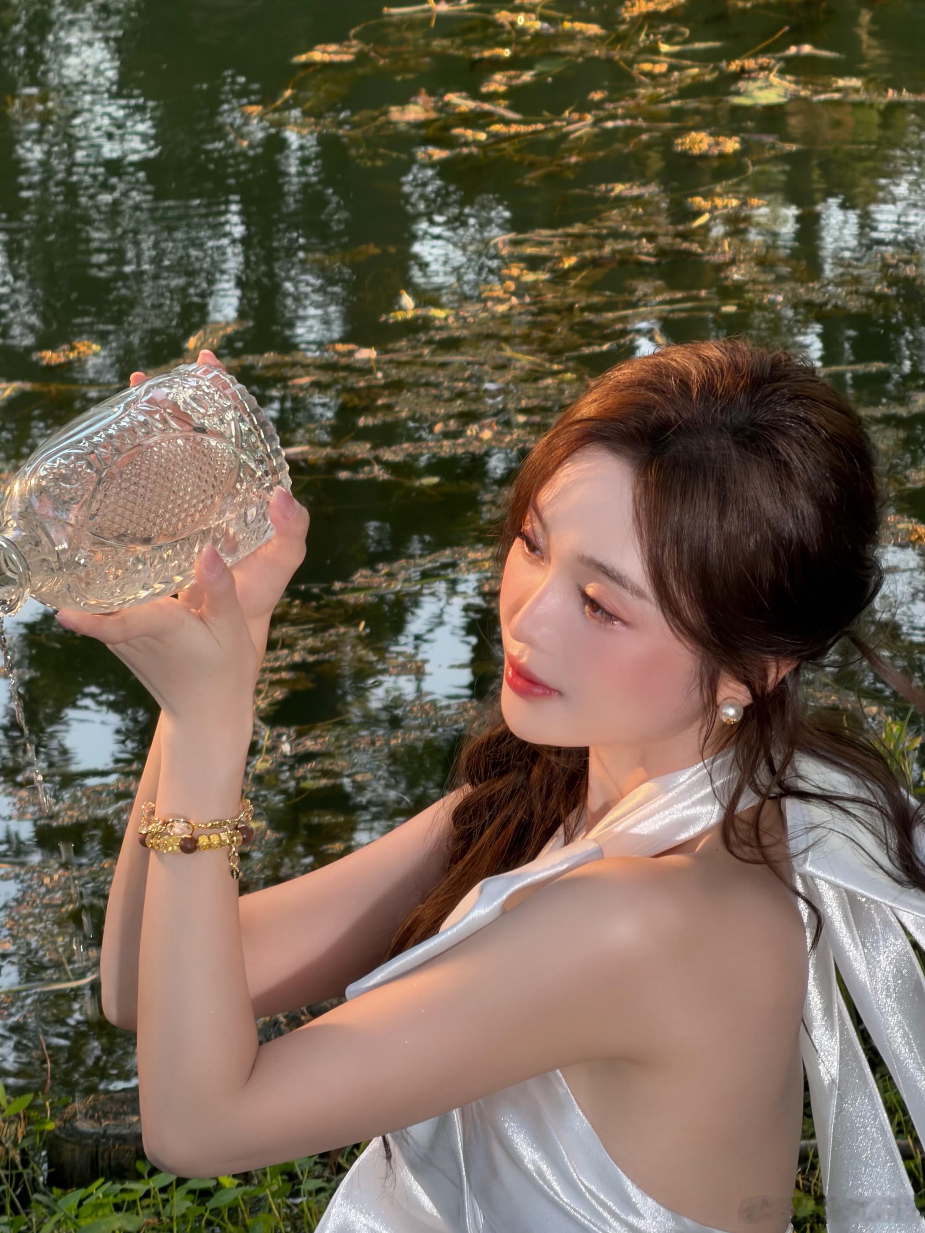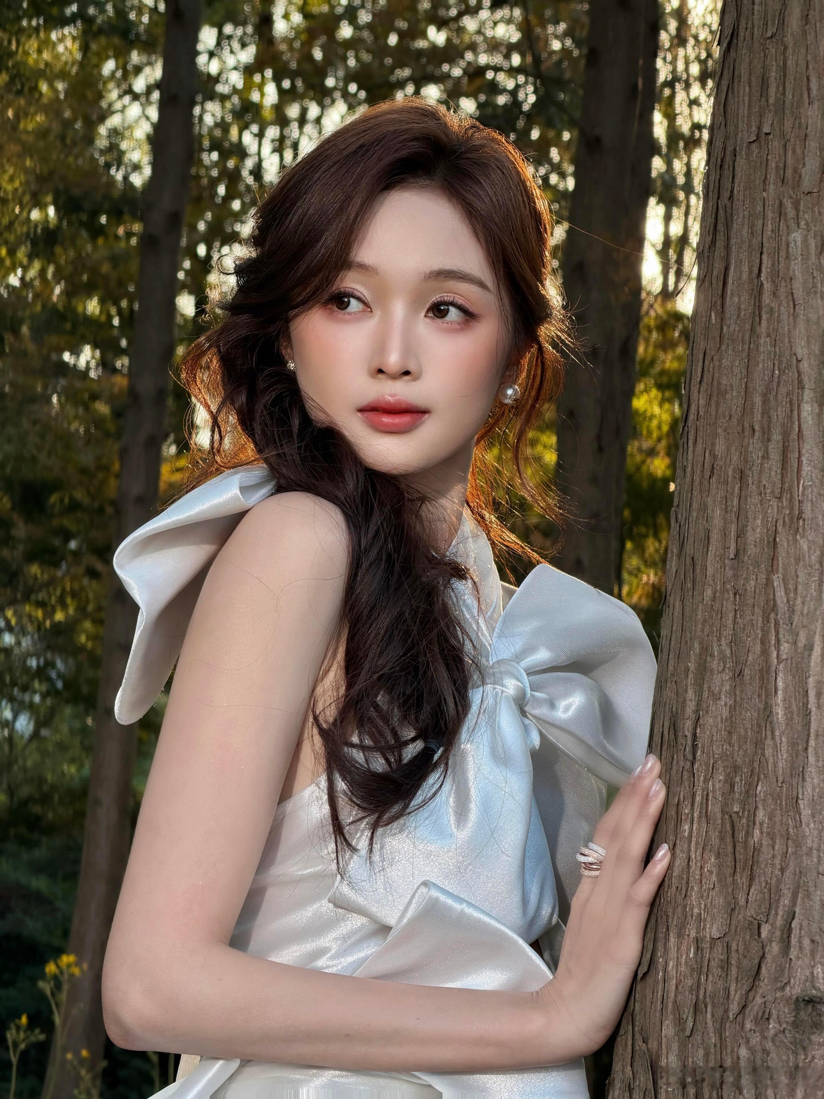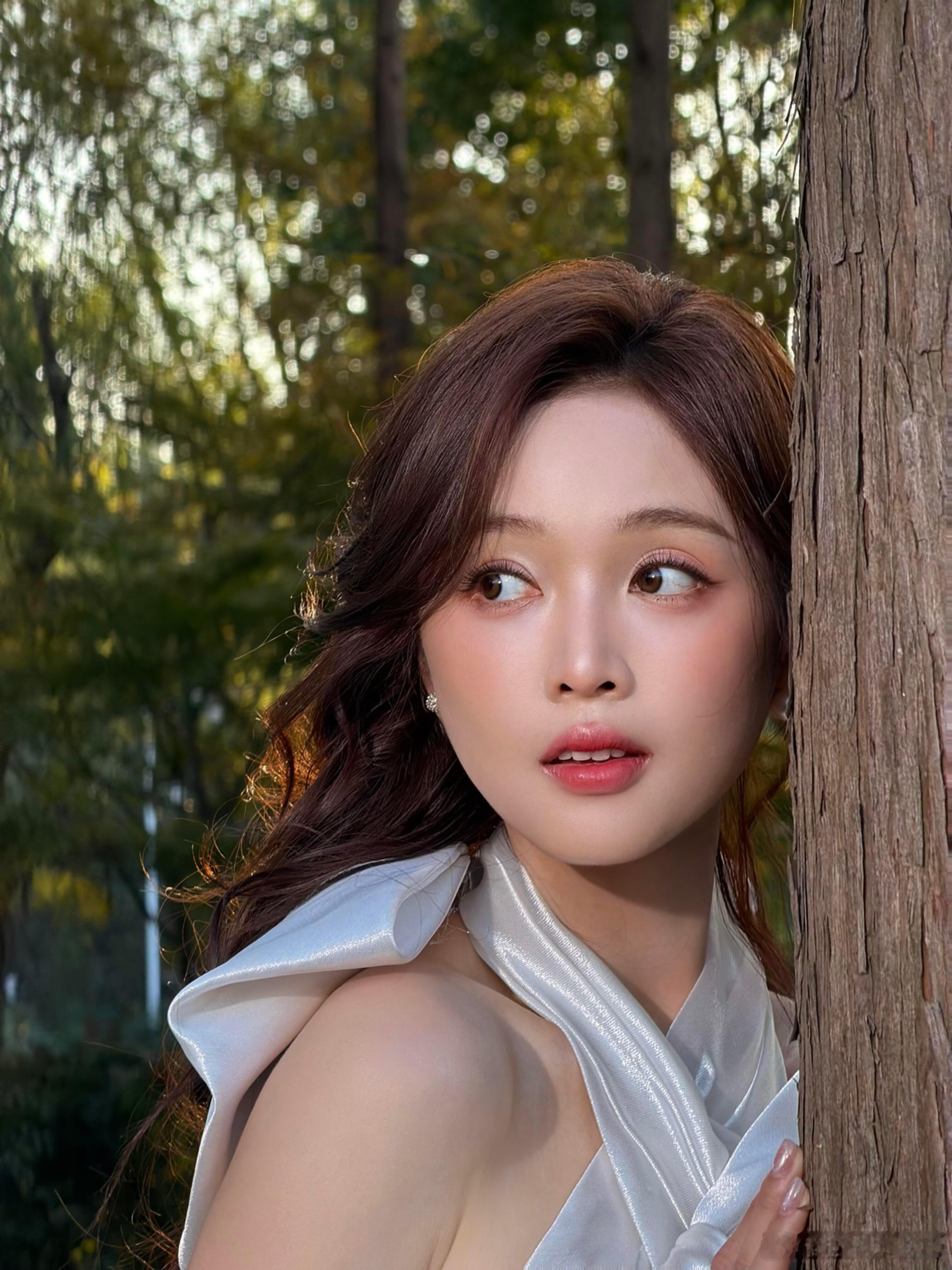吴宣仪是把“森林里的月光少女”演活了吧🌙棕卷发垂在肩头,缎面裙衬得皮肤像裹了层柔光,珍珠耳饰落在耳尖,连抬眼的弧度都漫着松弛的甜——这哪是生图,明明是把“慵懒又精致”揉进了绿意里。