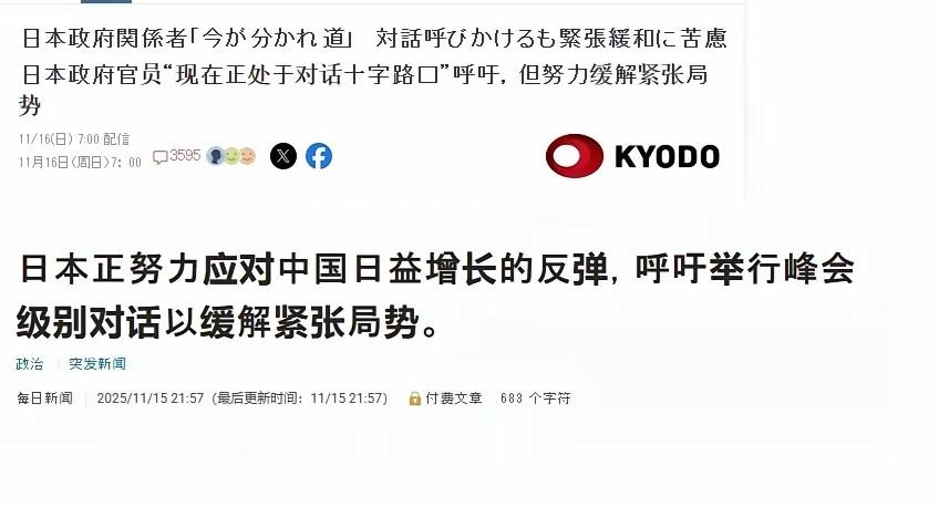 在道歉与担忧中方报复之间,日本政府陷入两难 在“担忧遭到中国经济报复”和“收回错误言论”之间,高市政府已经陷入两难——15日,日媒《每日新闻》发出了上述观点。 报道援引一位日本官员的话称,日本现在“正处于十字路口”,如果事态继续升级,日本可能会遭到中国的“经济报复”,比如中方限制稀土出口。 但另一方面,日本政府仍拒绝收回高市早苗的谬论,坚称高市早苗的言论只是“中日立场存在差异”,日方希望与中方举行峰会级别的对话以缓和局势,“正是因为双方立场不同,所以才需要加强沟通”。 网友:原则性问题没有讨价还价的余地,高市早苗若不认错不收回狂妄自大野心勃勃的言论,中日关系对立不可避免。中国应作好一切准备,以断后患。 继续上强度!日本国政府不公开承认“台湾是中国领土的一部分,台湾问题是中国内政,日本国永不插手中国内政”,咱绝不罢休。 日本人的思维跟投降后的思维一样,不承认,不道歉,总想着其它国家能迁就它,给它们脸了。这事要么让高市早苗下课,要么就开打,需要给日本脸吗?
