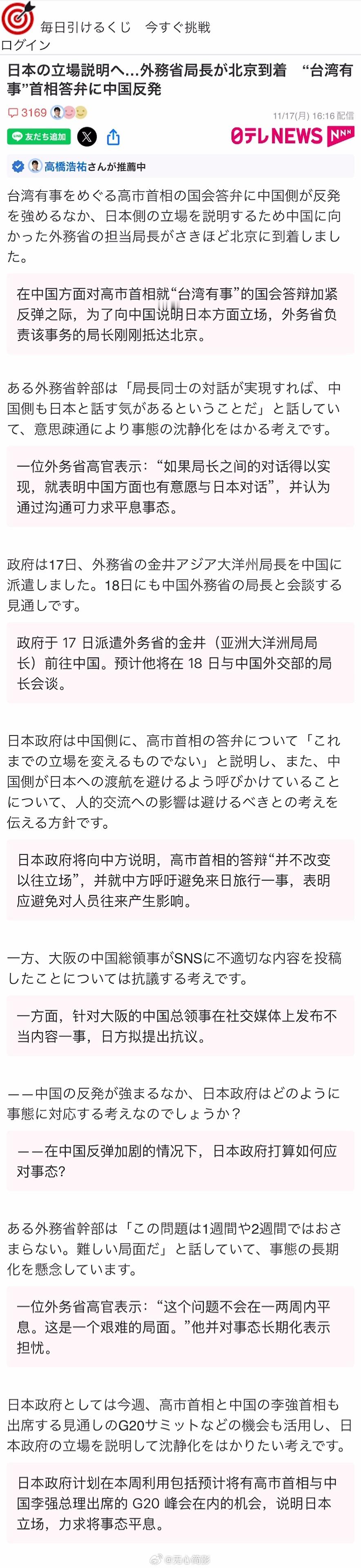 日本媒体:16:16—日方计划于G20峰会上与中方总理共同出席的机会,说明立场,平息事态。16:36—中国外交部公开丑拒。