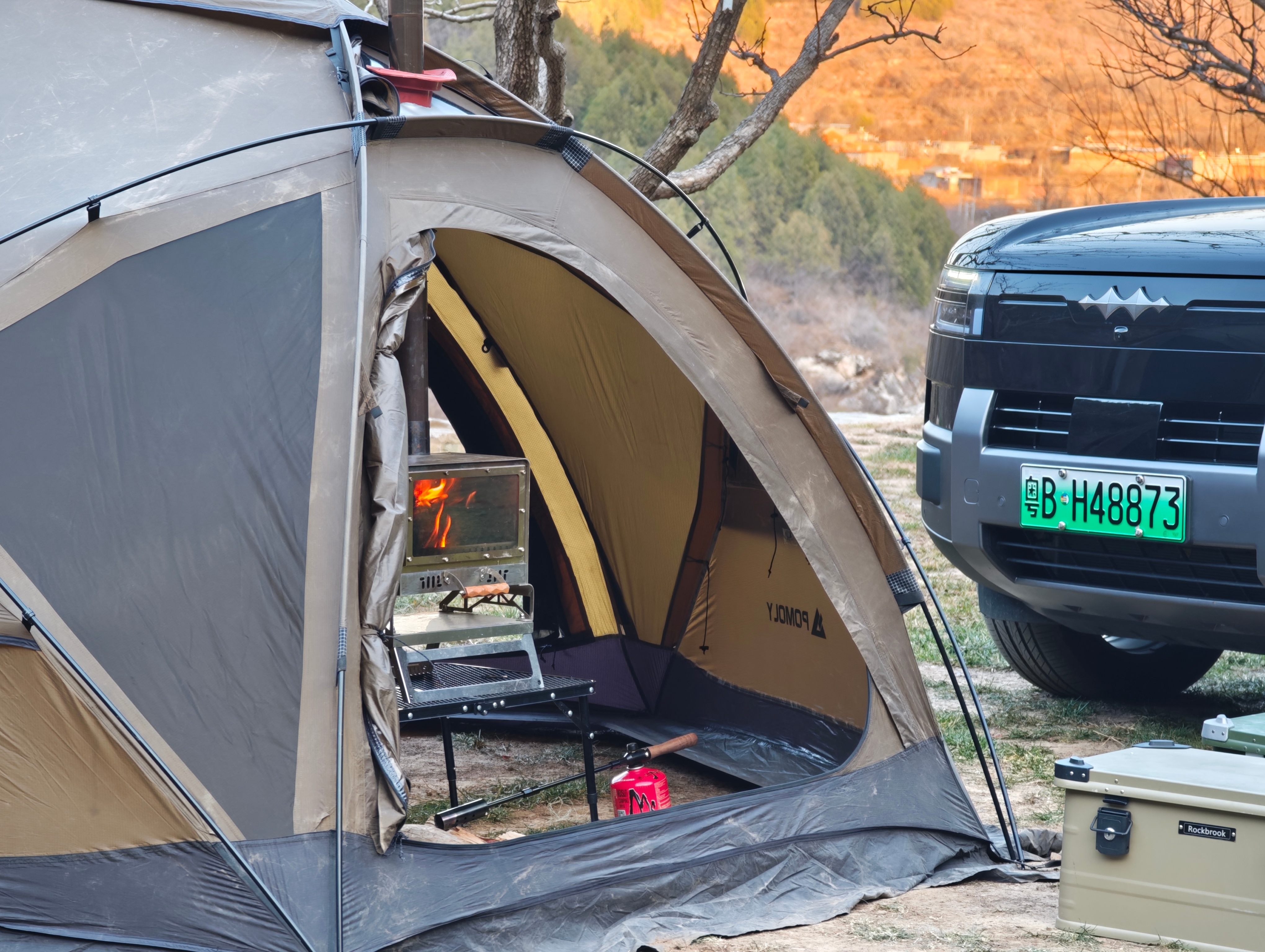 一直想拍一期钛7的 今天又来到天津屿林FUNNY Camp了外面现在风停了,气温5度烤烤柴火小壁炉待会儿整个火锅美滋滋的摸鱼一天