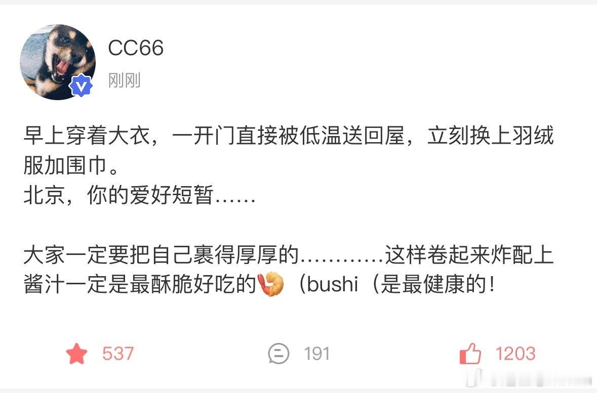 马嘉祺:北京,你的爱好短暂……是被降温冷到了的嘉祺呀~自己加衣的同时还不忘提醒粉丝也注意保暖,真的太暖心啦!