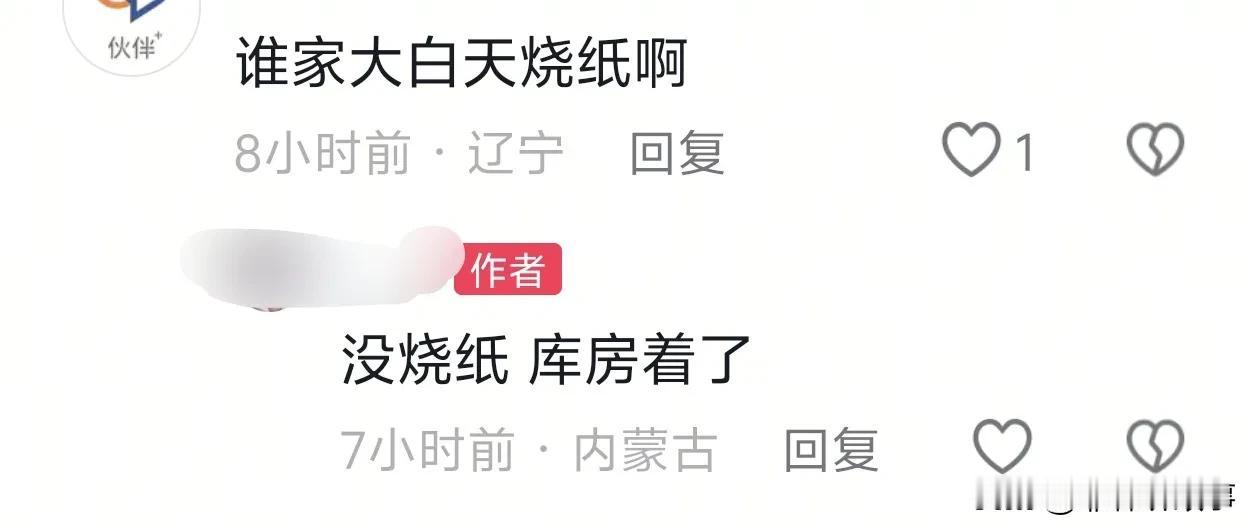 寒衣节将至,11月16日下午4点,内蒙古乌兰浩特,园丁小区,卖烧纸的集体仓库,不明原因起火,消防救援及时,用时3小时将火全部扑灭,无人员伤亡。 网友:谁那么缺德在小区烧纸。 网友:不行以后给烧纸的准备个地,准备好桶,太吓人了。 网友:这是谁缺钱了? 小区业主:不是烧纸,是集体仓库内部,不明原因部着火。