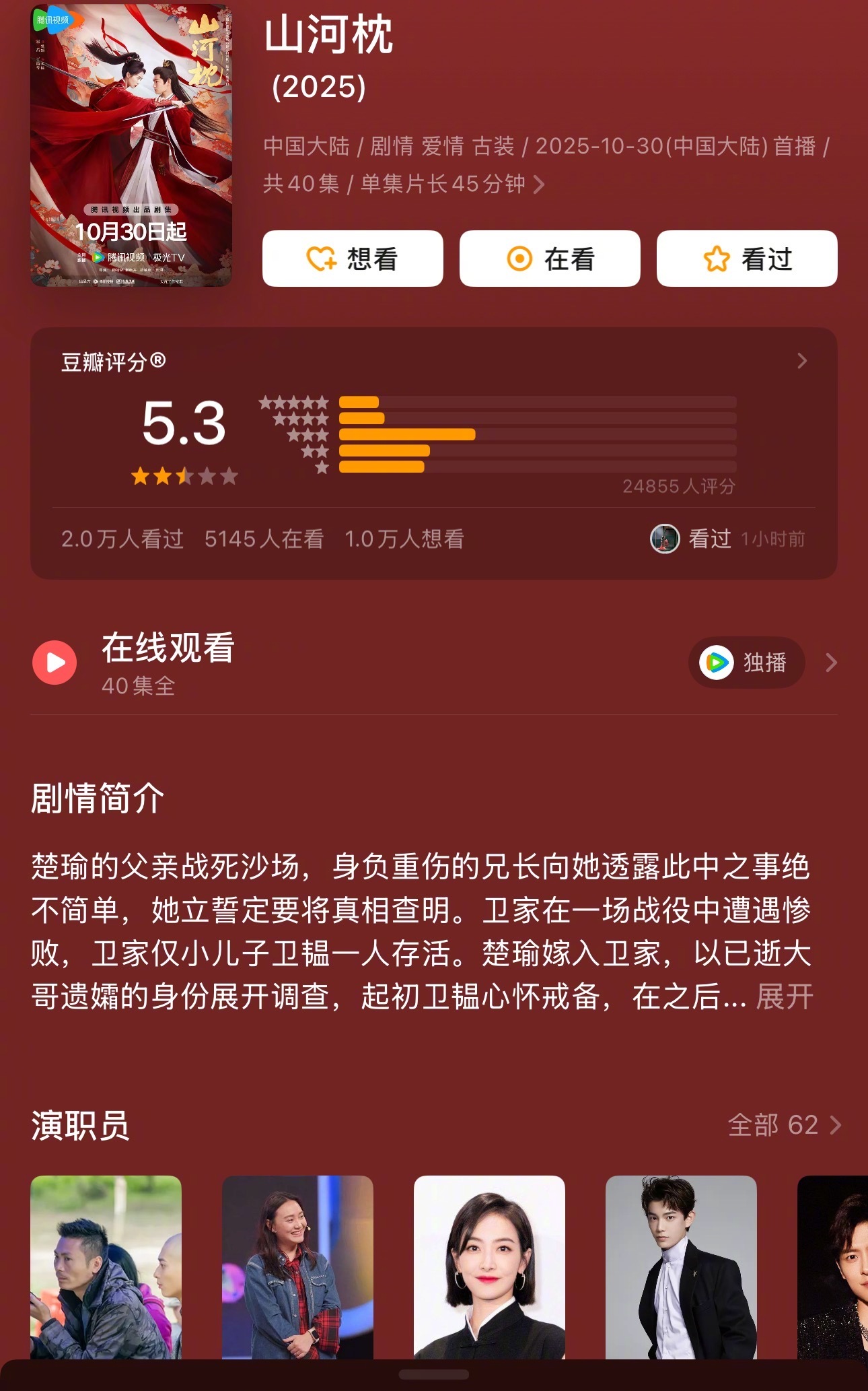 山河枕最终以热度25000,豆瓣5.3结束,这剧可以说是没达到预期,什么原因?