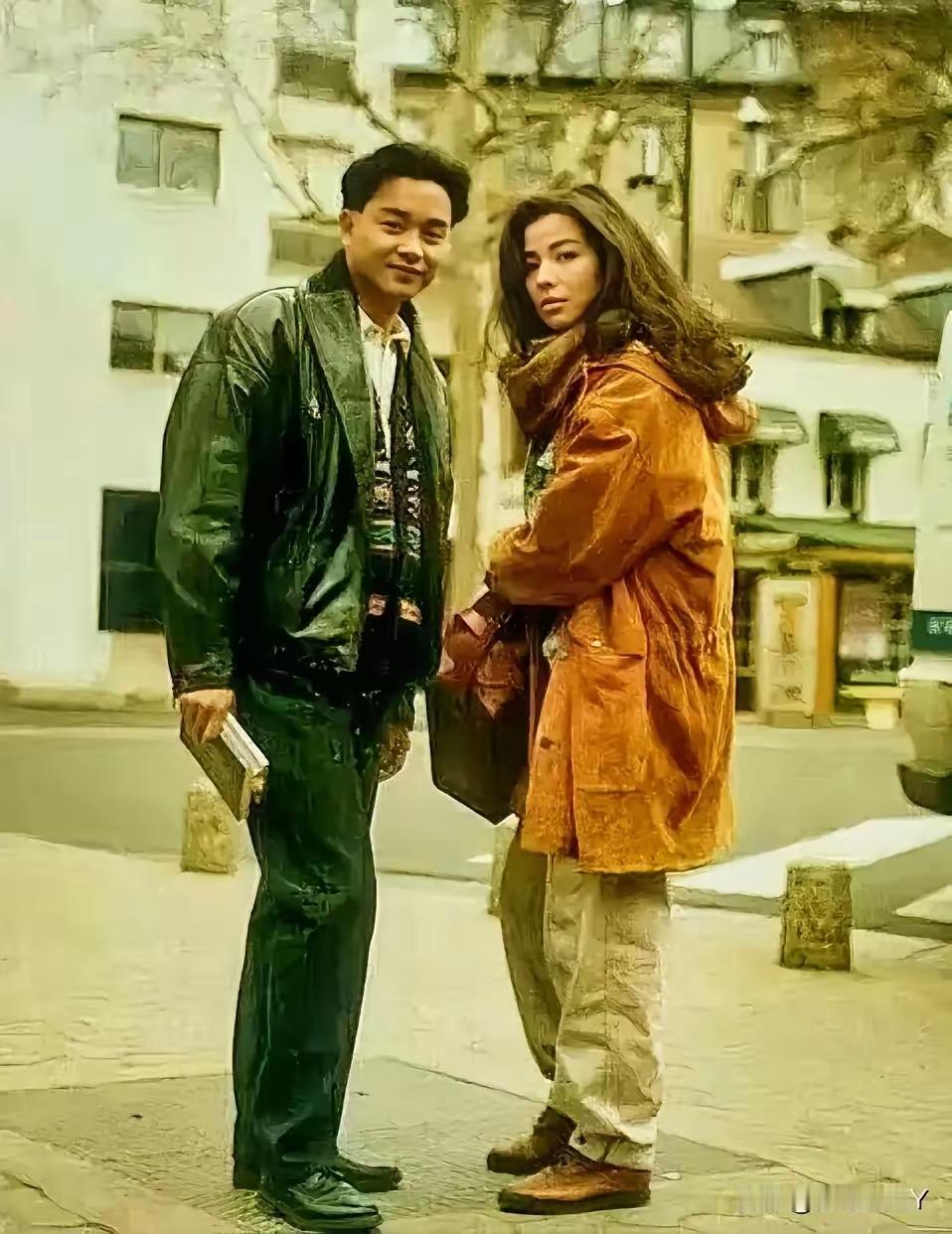 1989年法国巴黎街头,张国荣和钟楚红这张合影堪称无价之宝。33岁的张国荣嘴角挂着浅笑,眉眼温柔似水,一件皮衣衬得他气质洒脱随性,帅气时尚中又透着儒雅温润。29岁的钟楚红身着红棕色大衣,长发随风飘动,侧颜美得让人窒息,柔美妩媚又热情优雅。 那时钟楚红本打算嫁人退圈,却因张国荣盛情邀请出演了《纵横四海》。戏里他们是错爱的恋人,戏外是灵魂知己。张国荣离世时,钟楚红哭到晕厥。这张照片不仅定格了他们的绝代风华,更见证了这份深厚情谊。