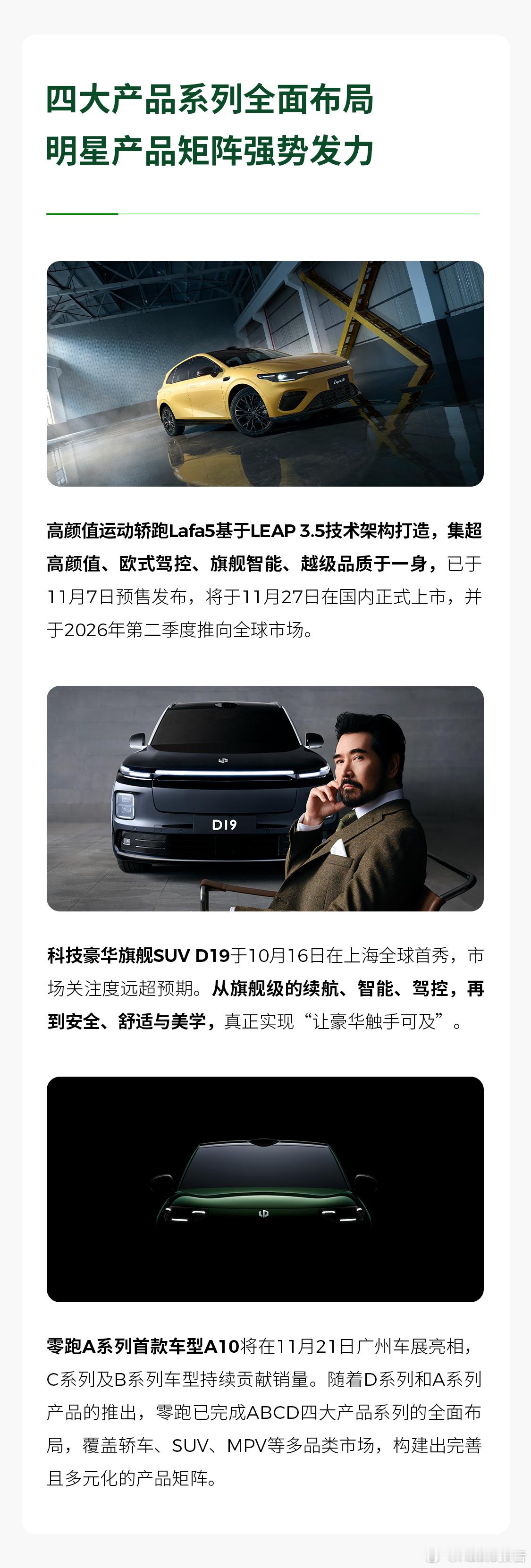 零跑汽车发布2025年三季度财报11月17日,零跑汽车发布2025年三季度财报。财报显示:2025年第三季度,零跑汽车总收入为194.5亿元,同比增长97.3%;净利润为1.5亿元,已连续实现季度盈利。2025年第三季度,零跑的汽车总交付量为17.39万台,同比增长101.8%。零跑汽车自3月起连续8个月居中国新势力月销榜首,9月首破6万台,10月破7万台,刷新月销纪录。创始人朱江明称已提前45天完成50万辆年销目标,Lafa5、D19、A10等新车待发,明年计划冲击100万辆。