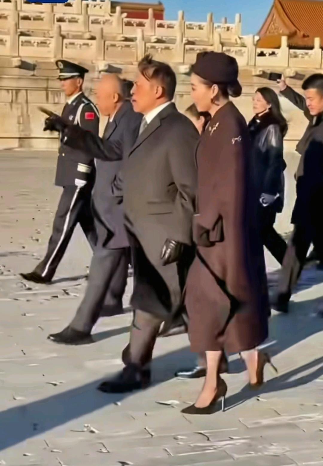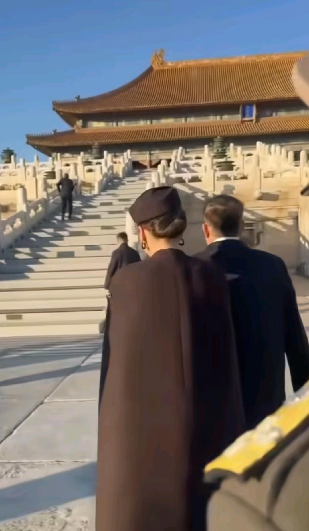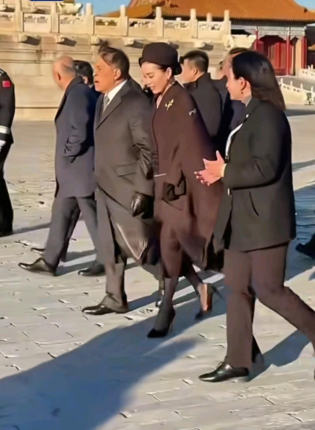 苏提达穿着黑色10公分的高跟鞋游故宫,也是难为她了,不仅天气冷,并且还有台阶要上,但苏提达依然优雅的游完了故宫。 苏提达披着黑大衣,戴黑色帽子,在故宫的石板路上走的时候明显很吃力,由于鞋子跟高,容易枕脚和崴脚,走路也当然就要慢并且要小心翼翼。 苏提达这时候把自己的手搭在丈夫的胳膊上,一步一步向前迈进。