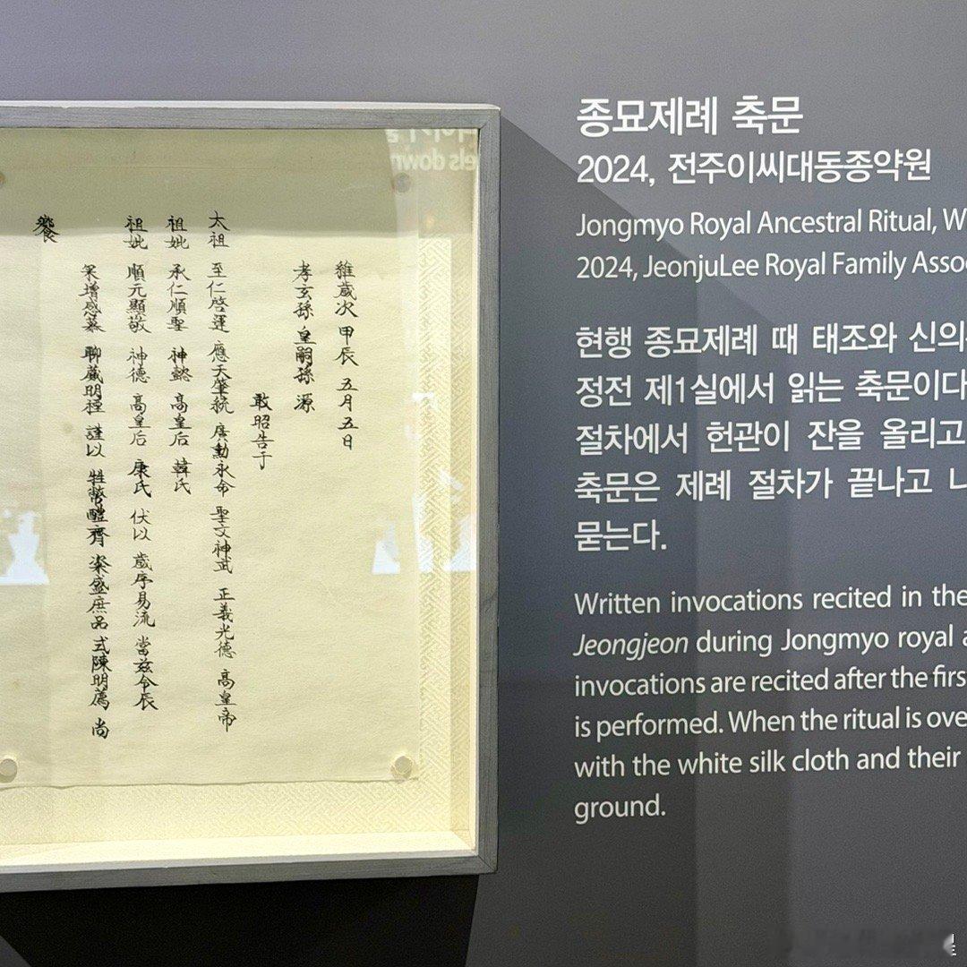 宗庙,韩国世界文化遗产。这是李氏朝鲜王朝(1392—1910年)祭祀历代国王及王妃的皇家祠堂,始建于1395年,1592年因为丰臣秀吉的入侵而被焚毁。1608年重建,然后不断扩建,1836年形成今天的样子。因为李家受封的人一直活到八十年代末,所以最后入庙供奉的居然要到1991年。现在正殿(图1、4、5、6)是韩国国宝,长101米,深27米,永宁殿(图7)是韩国宝物。宗庙是祭祀之地,1910年朝鲜王朝灭亡之后,宗庙被降级为李王的家庙,国祭也变成了家祭,缩小规模后勉强维持,到军国主义时期基本就停了。宗庙祭礼中断了近四十年,几乎失传,到1969年恢复,由全州李氏家族主持,主祭的是李家王室的直系后裔。所以宗庙现在还是个活着的宗庙,年年举行春秋大祭,图8是2024年李家后嗣给太祖李成桂的祭文,用的是非常标准的古汉语。
