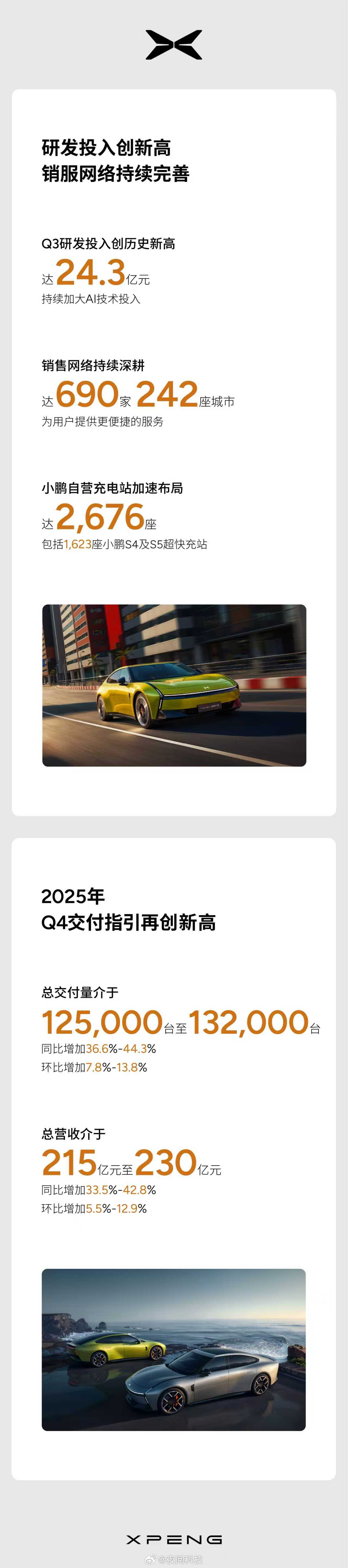 小鹏汽车发布2025年第三季度财报,第三季度总交付116,007台车,截至2025年9月30日,现金流为人民币483.3亿元,小鹏的现金流越来越稳健了