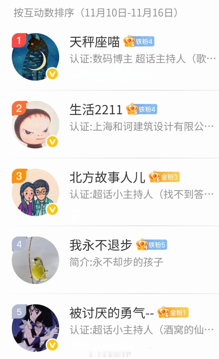 【周互动榜公布】11.10-11.16本月互动送「超千元大鸿包」上榜的朋友记得私