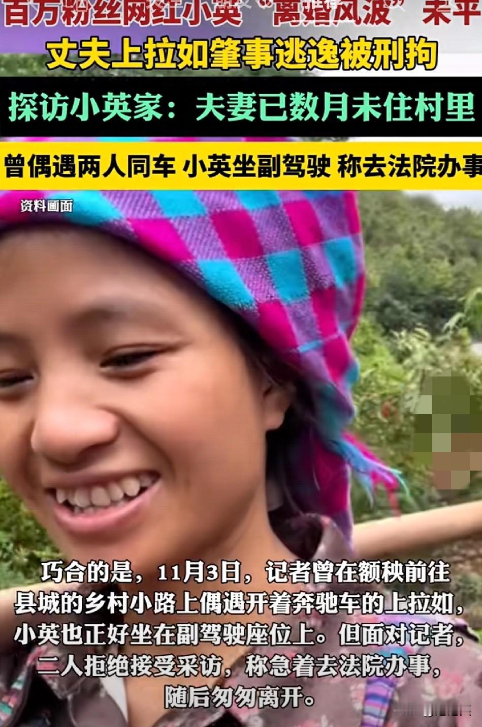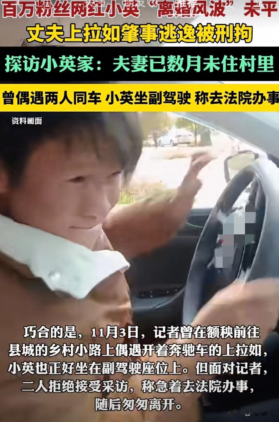 又双叒叕出事 432万粉网红家塌了 丈夫醉驾撞人逃了,1人躺ICU,年销千万账号要黄? 靠“农村勤劳媳妇+摆烂丈夫”吸粉432万、一年带货赚千万的“小英一家” 这下彻底崩了 11月12号凌晨,她丈夫喝了酒开奔驰撞了电动车撞完直接弃车跑了 把人家撞得一个ICU昏迷、一个粉碎性骨折 更离谱的是,出事前3天还有人见他俩同车,说“急着去法院办事” 是分那432万粉账号的钱,还是早猜到要闯祸 现在人被刑拘,账号停更,曾经的流量摇钱树说凉就凉 靠演“底层生活”赚得盆满钵满的网红 转头就把真·普通人撞进医院 到底是人设太假,还是流量把人心养歪了 这账号要是凉了,你怎么看?