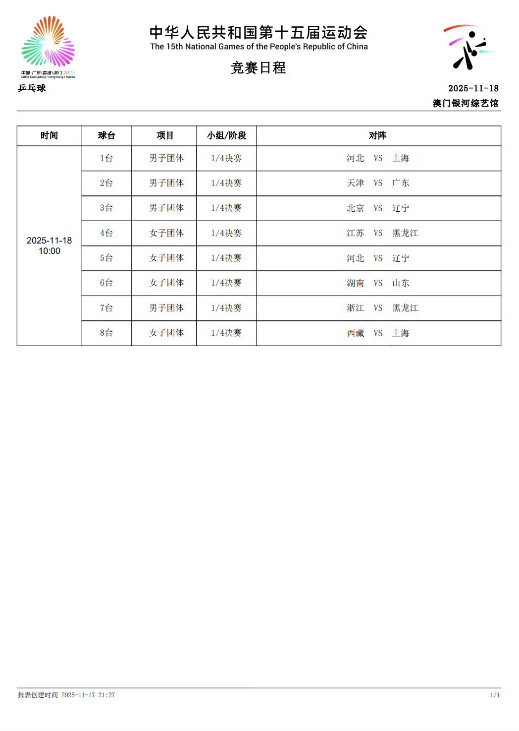 全运会男女团淘汰赛签表,只能说这真的是签。 女团是按照世排写的签吗? 上半区,谁这么有才,把世排前五的的人都放在了里面, 下半区,轻松自在,速速晋级。 男团,浙江在哪里很重要,说明这个半区,基本上稍微强点的就直通决赛。 孙颖莎的河北队vs王艺迪,陈幸同的辽宁队,辽宁是要夺冠的, 河北第一轮就要对战, 即便是赢了(当然希望不大),还有王曼昱的黑龙江或蒯曼时洵瑶的江苏。 王楚钦的北京首轮就是辽宁,难度很大,还有削球,打完,胳膊基本上也衔接不上混团了。 梁靖崑的河北首轮樊振东的上海, 梁靖崑有伤。 都很困难,明天一起加油吧。 附18日上午赛程表。