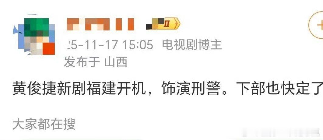 黄俊捷新剧即将开机,演刑警,播剧也快,真是越来越好了!