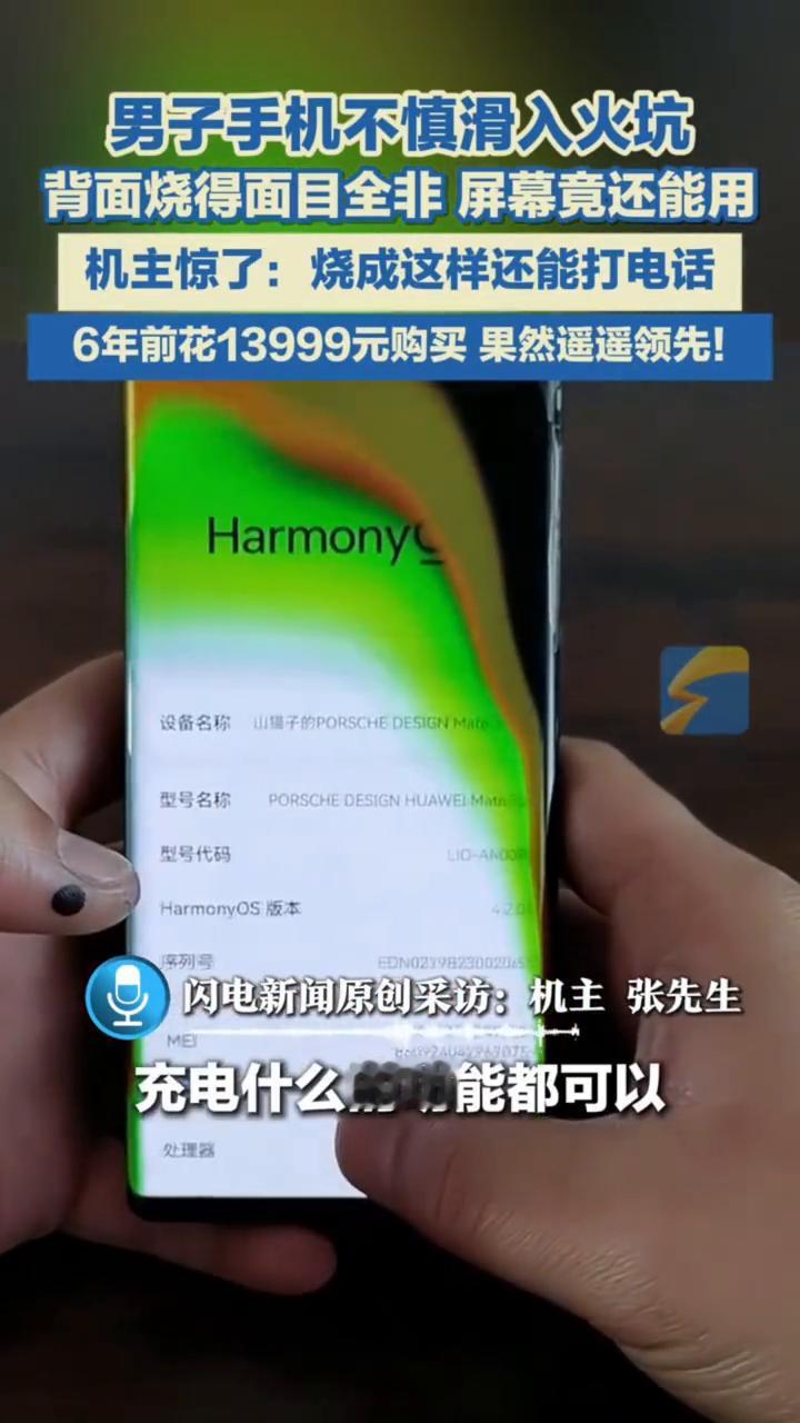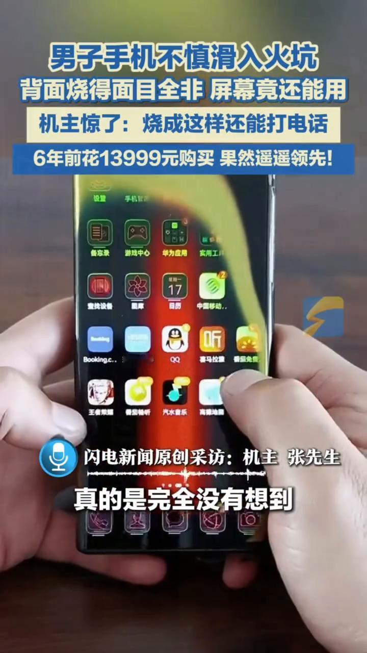 男子手机不慎滑入火坑,背面烧得面目全非,屏幕竟还能用。机主惊了:烧成这样还能打电话,6年前花13999元购买果然遥遥领先! 闪电新闻。 11月16日山东滨州。焚烧垃圾的时候从口袋里边自己掉下去了,真的是完全没有想到像这个样了还能够开机、接打电话、充电什么的功能都可以,半边屏幕还可以用。6年前花了13999(元买的),就是很惊喜这个事。
