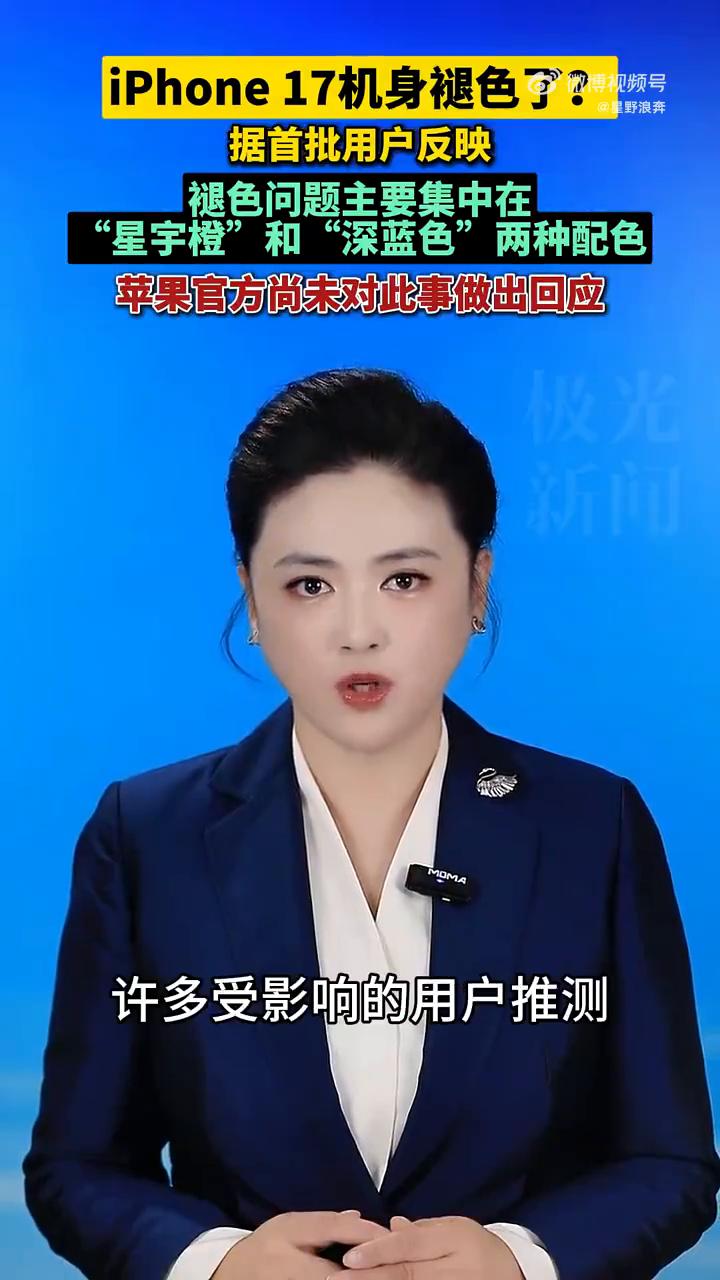 iPhone17机身褪色了? 第一批到手的新iPhone17已经开始褪色了。据首