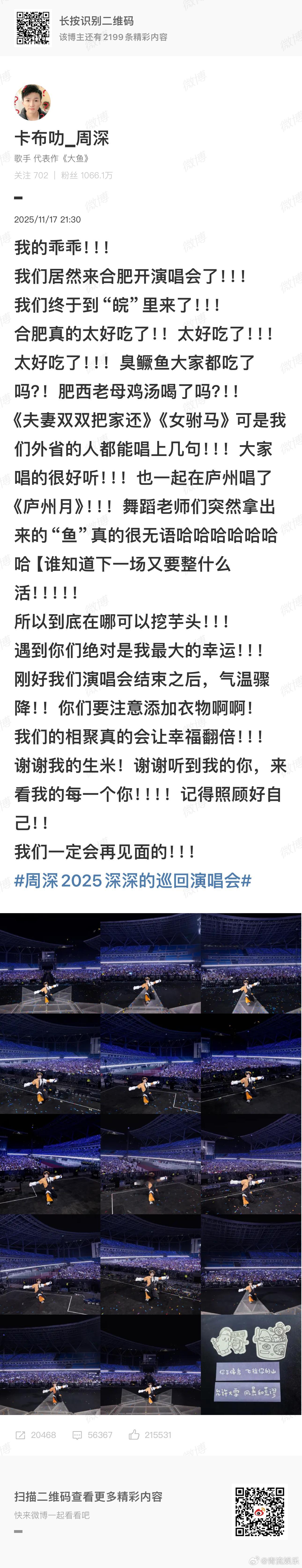 周深分享合肥演唱会大合照!每个角度的观众席都照顾到了,是细心暖心的深深呀