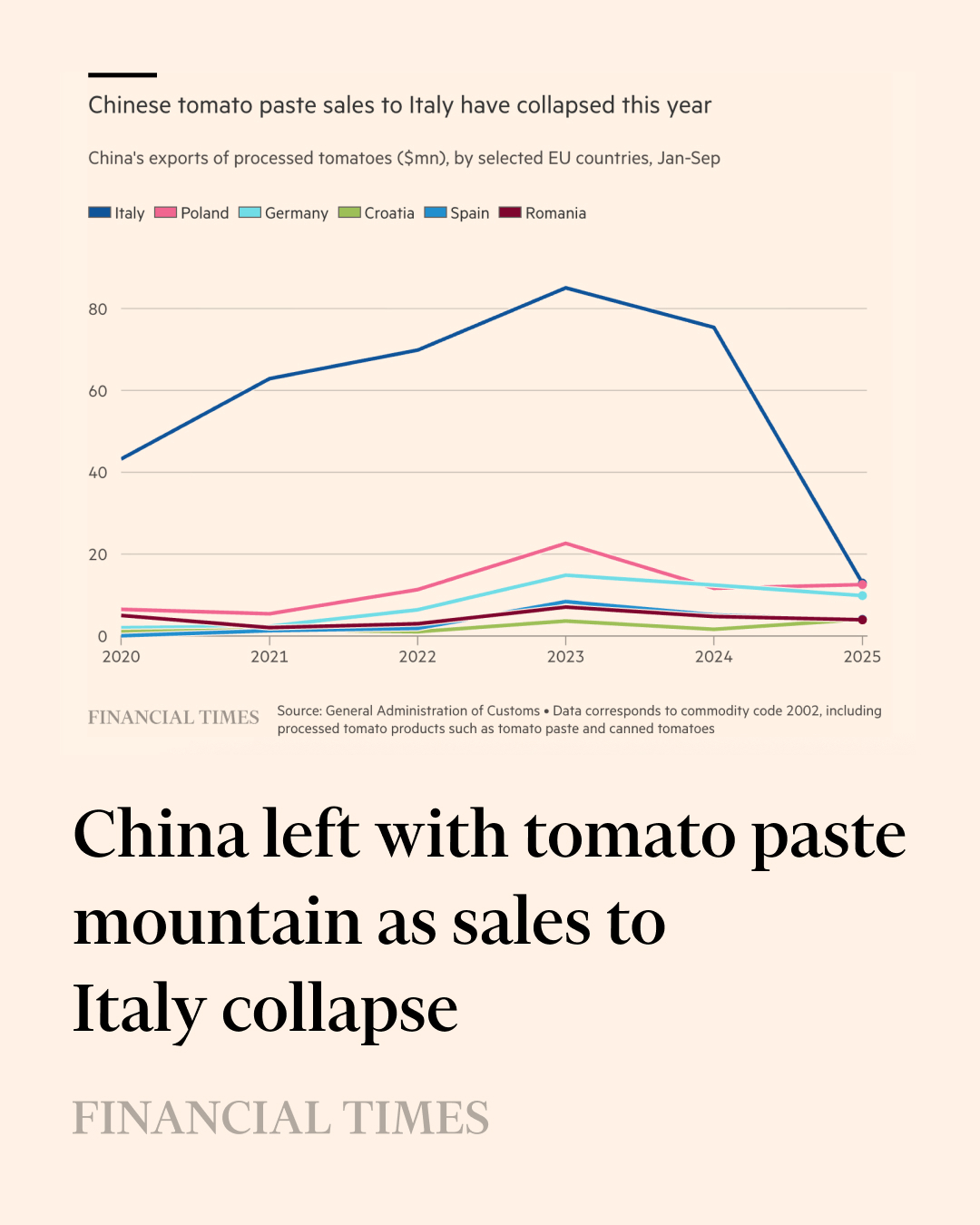 新疆地区近年来大幅扩大了番茄种植与加工规模,但对意大利及其他西欧市场的出口销量今年大幅下滑,导致当地积压了大量未售出的番茄酱。