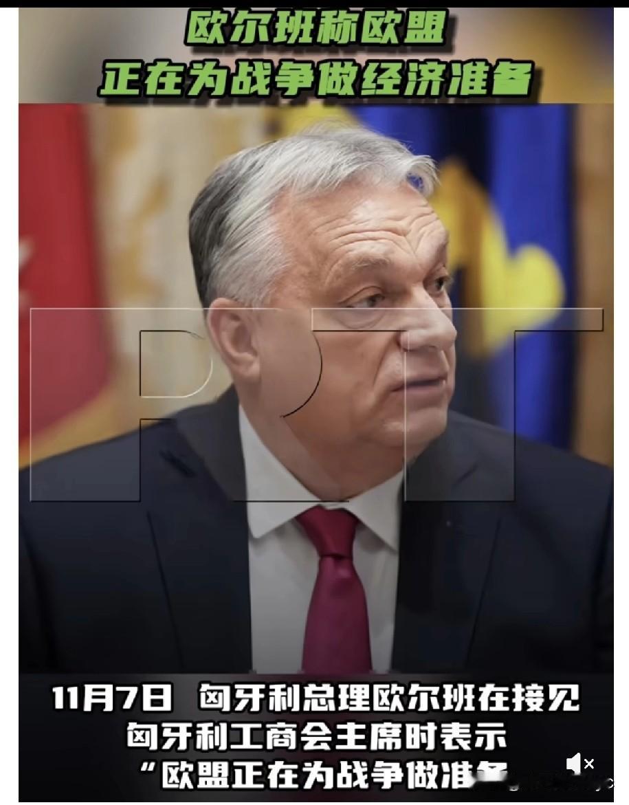 匈牙利总理欧尔班在接见匈牙利工商会主席时表示,“欧盟正在为战争做准备,并将经济转
