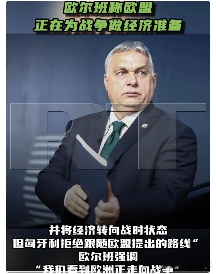 匈牙利总理欧尔班在接见匈牙利工商会主席时表示,“欧盟正在为战争做准备,并将经济转向战时状态。但匈牙利拒绝跟随欧盟提出的路线”。 欧尔班指出,“我们看到欧洲正走向战争”。“欧盟领导人一方面试图通过经济军事化将所有权利集中在自己手中;另一方面则继续向乌克兰提供军事支持。他们计划维持一支100万兵力的乌克兰军队,并动用欧盟新七年预算的20%至25%用于乌克兰的军事开支”。 欧盟还是要把乌克兰打造成一个欧洲的军事机器,以此对应所谓来自俄罗斯的安全威胁。尽管俄罗斯一再申明,不会对任何国家构成威胁,但欧洲这帮政客却一直不停地渲染俄罗斯就是欧洲的安全威胁,其目的就是试图通过经济军事化将所有权利集中在自己手中。 匈牙利总理欧尔班是一个清醒的领导人,早就看穿了欧盟委员会的政治图谋,多次提出批评并给予抵制。 他批评欧盟正将资源大规模投向乌克兰军事支持,推动“战时经济”,并计划动用新七年预算的20%至25%用于相关军事开支,认为这偏离了欧盟作为“和平项目”的初衷。欧尔班强调,匈牙利拒绝参与此类政策,不提供武器、不派遣士兵、不承担战争相关财政义务,坚持走独立于布鲁塞尔的自主道路,致力于成为“和平的避风港。 这一立场根植于匈牙利对主权保护、经济独立和能源安全的考量。 欧尔班多次指出,照搬欧盟路线将导致税收增加、资金外流至乌克兰,并削弱国家自主权。他还质疑欧盟对俄制裁损害自身能源供应,加剧经济危机,并警告欧洲正滑向冲突深渊,呼吁战略冷静与和平谈判。 但是,欧尔班在欧盟被视为异类,不断遭到排挤和孤立,势单力孤,他的反对,很难改变欧盟的政策决策,但匈牙利的立场也不得不让欧盟那帮政客有所忌惮,在一定程度上还是会有作用的。