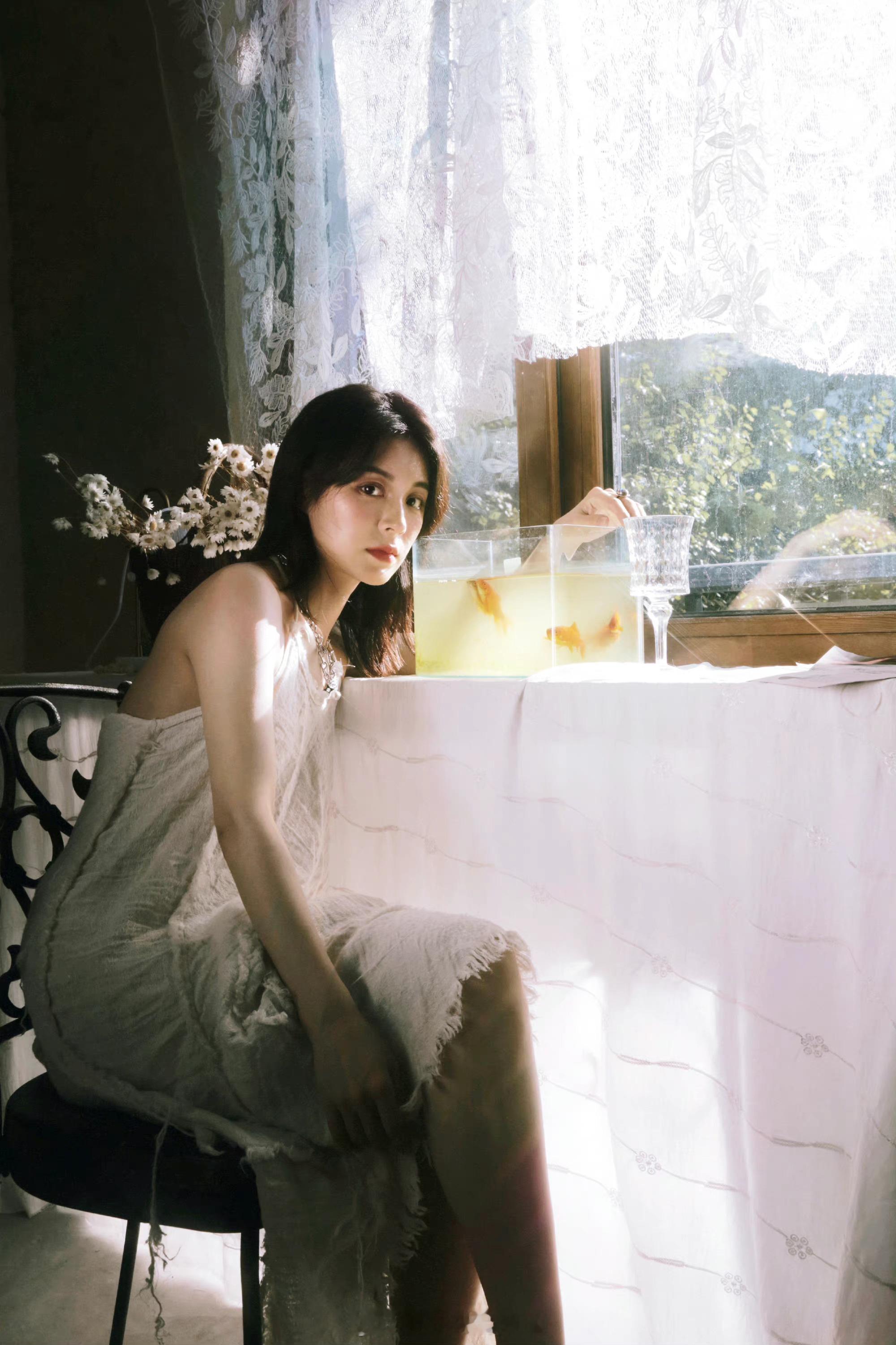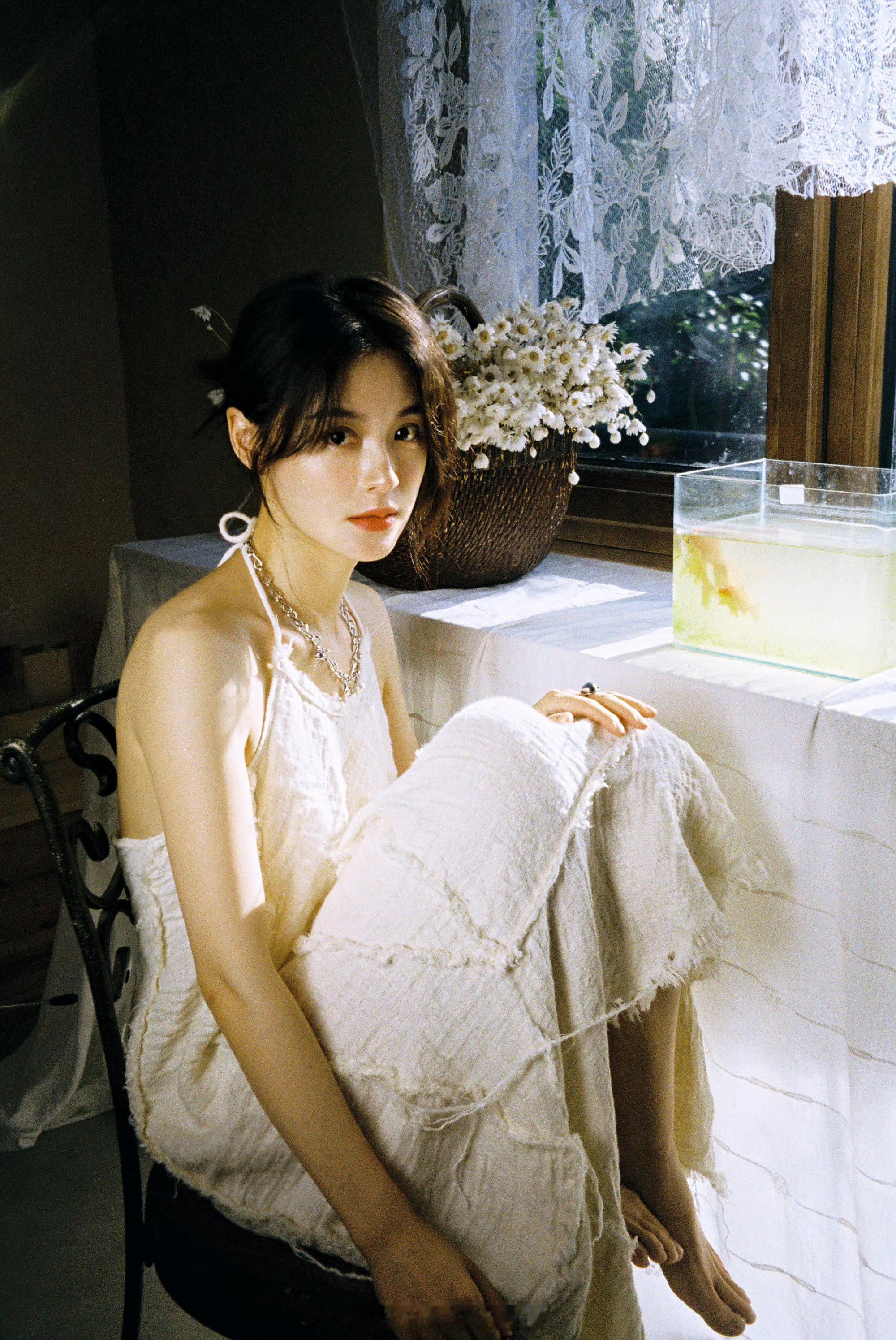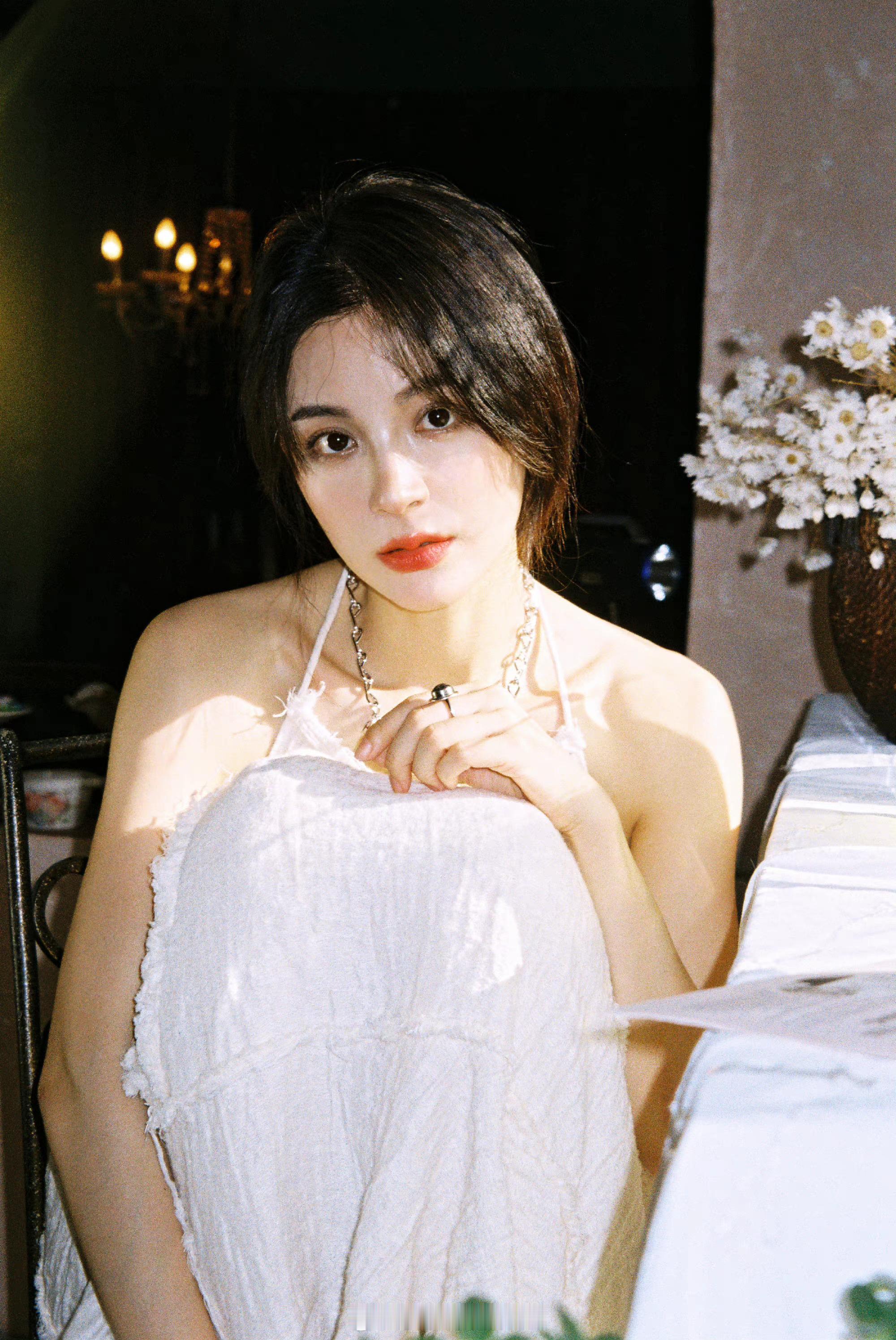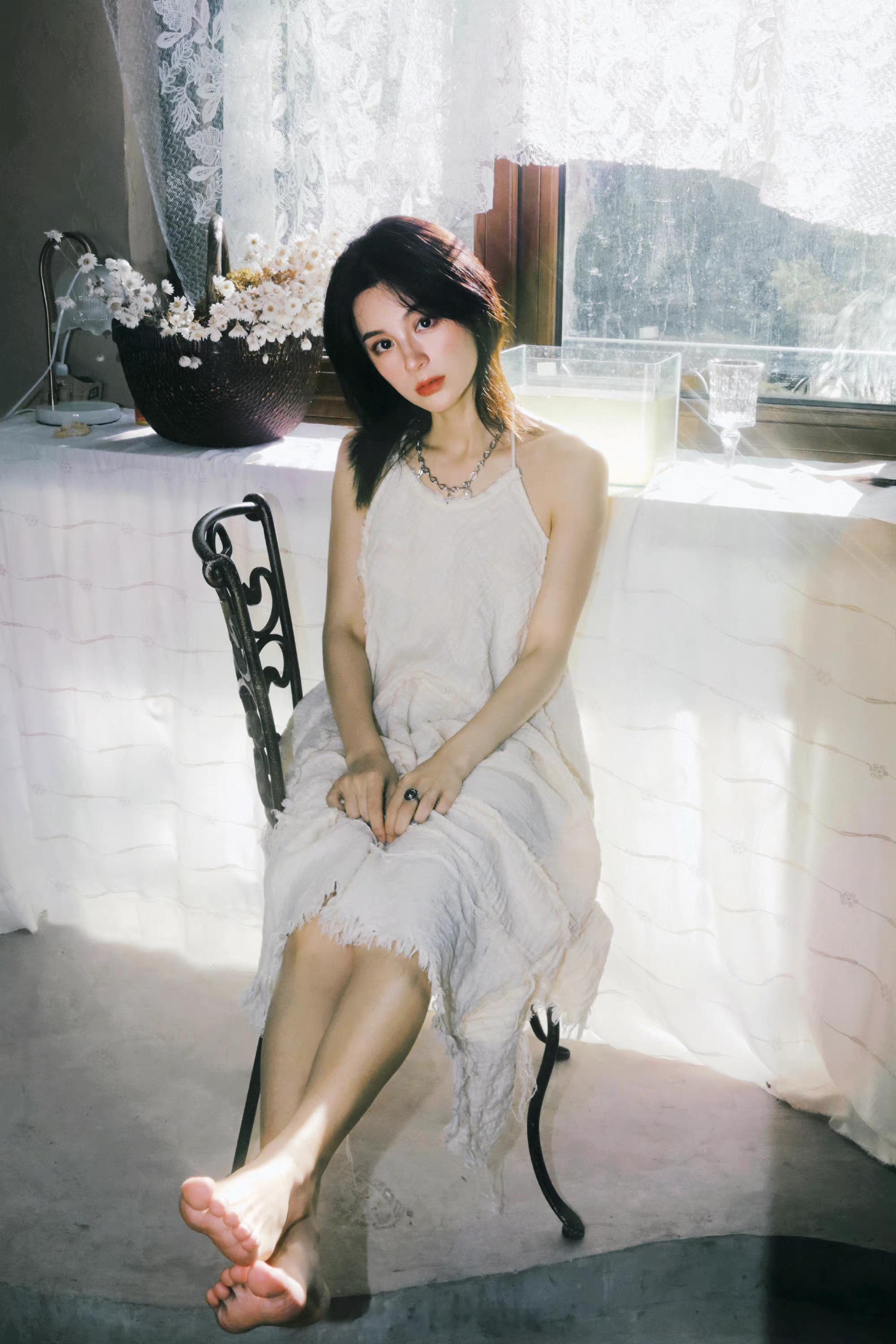 迪丽热巴单腿丝袜穿搭冷酷迷人