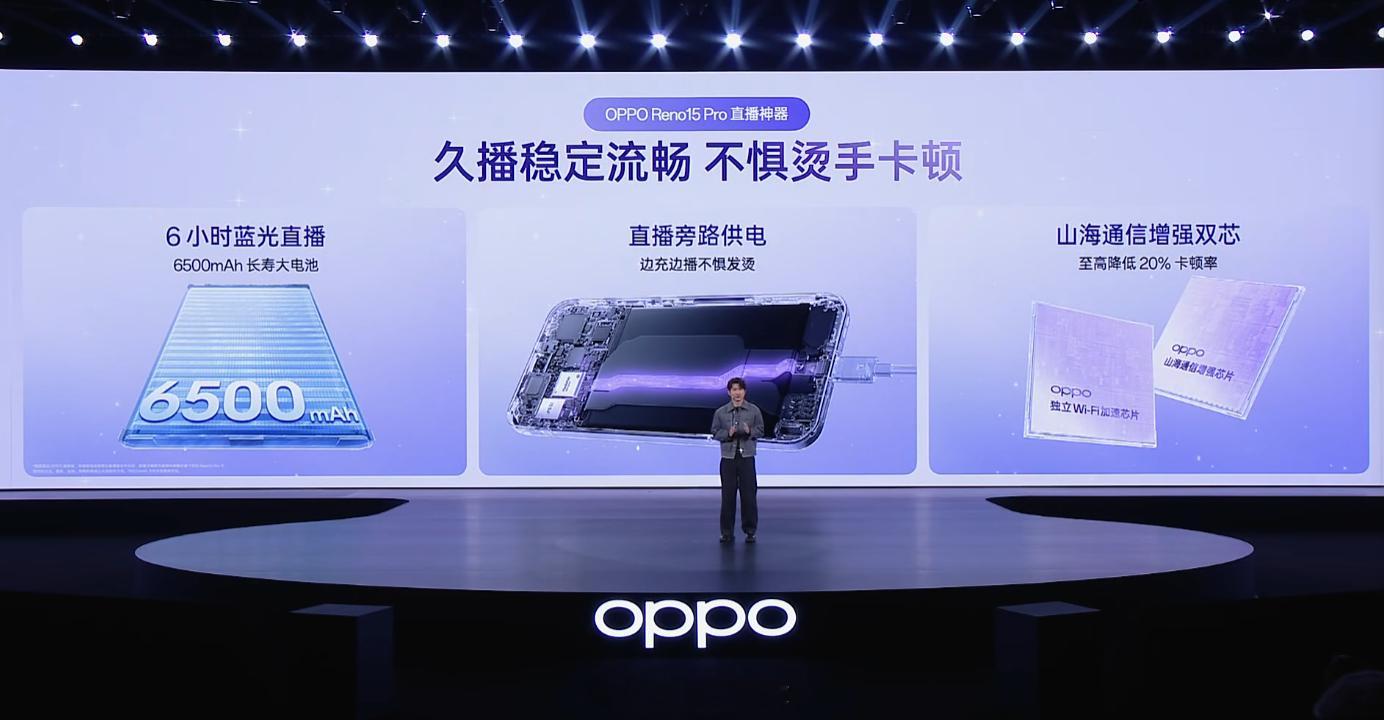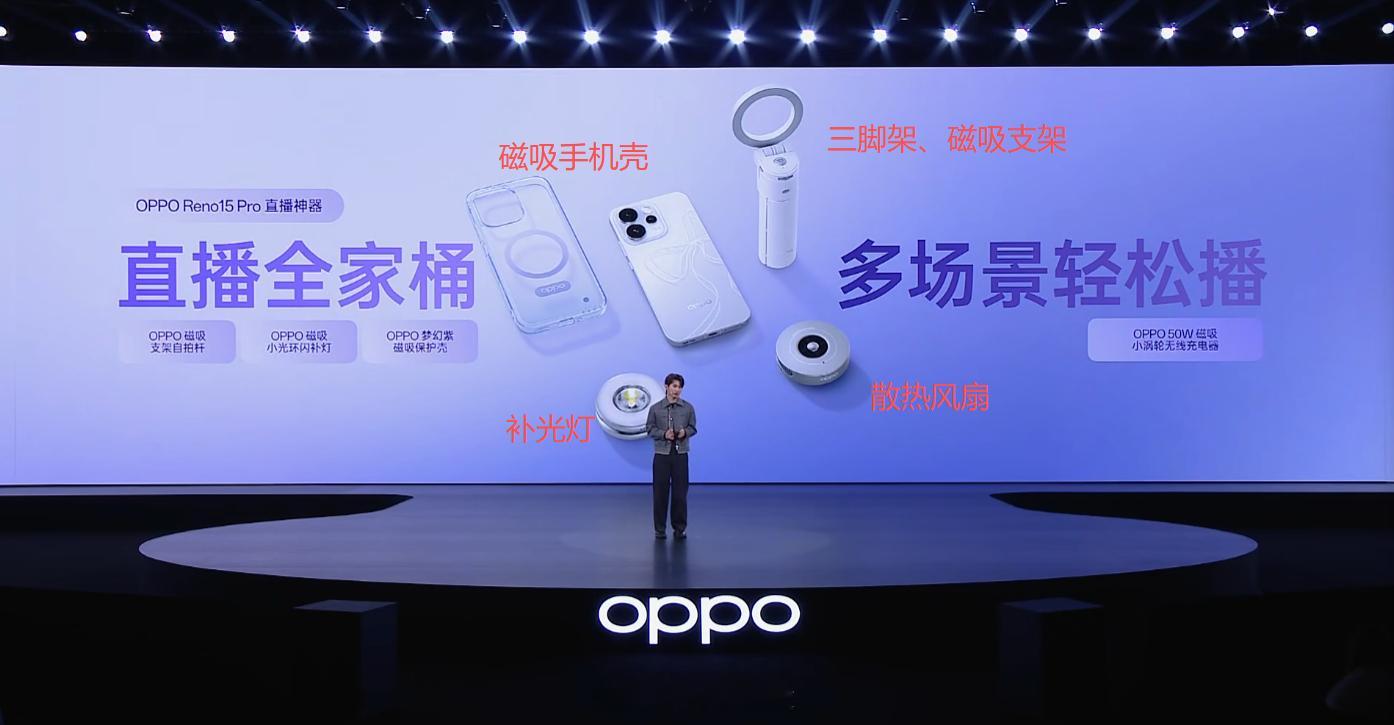 除了Reno 15系列本来的实况照片,Reno 15 Pro在直播这方面也有更强的造诣。比如直播信号增强、比如前置防抖、比如三麦克风降噪,又比如专门针对长时间直播而设的6500mAh电池以及旁路供电。O记还专门为它做了一套直播套装,包括磁吸手机壳、支架、补光灯、散热风扇。那么软件呢?软件这部分Reno 15 Pro专门提供了60s切片录制按钮,一键就能完成1080P的切片,方便主播下播之后做回顾,很方便。最后还有一个One More Thing,Reno 15C,一款将会在12月发布的入门机。价格看图八、图九,我觉得作为学生机、直播生产机,这个价格还行的啦。