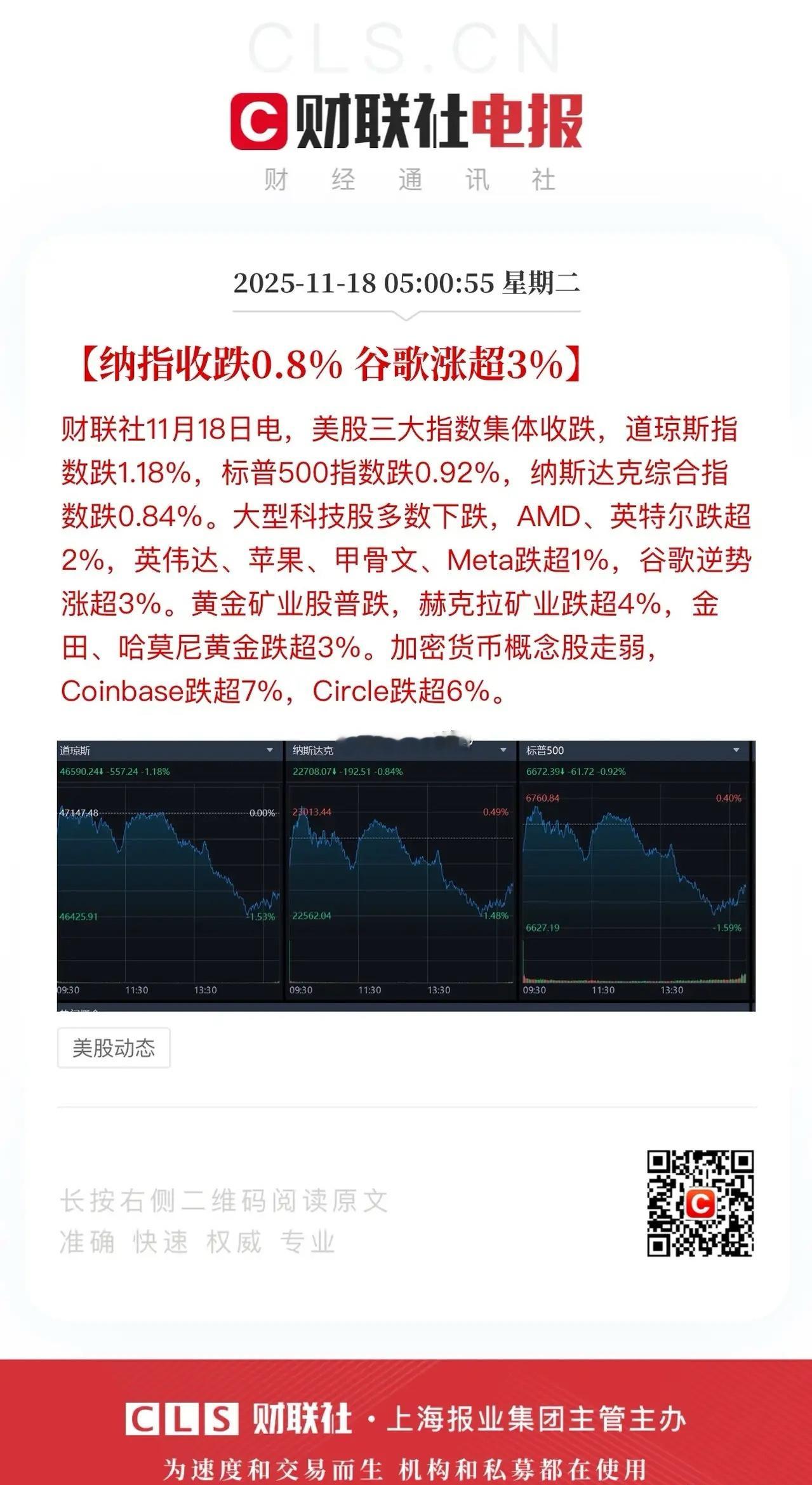 隔夜美股三大指数都做了漂亮的高台跳水动作,尾盘上浮吸气。大型科技股仅谷歌唱独角戏,巴菲特伯克希尔三季度入手催化作用不小。相信伯克希尔也是看中了,谷歌拥有全球最大的数据库。并且在Ai应用时代,谷歌能很自然的切入Ai搜索引擎。这也是A股360走封板的逻辑,360浏览器和安全软件切入Ai异曲同工。投资者必须把思路切换过来,Ai进入下半场比拼爆款Ai应用和用户群体。…回归隔夜美股普跌格局下,美国雅宝和中概股晶科能源等领涨,今天白天A股将迎来硅行业碰头会,市场对减产预期一致。胆大的资金昨天调整,提前押注弘元绿能硅晶片公司。强生、再生元等医药股还不错!美股看到的是存储芯片利好钝化,和Ai应用爆发前夜的新机。