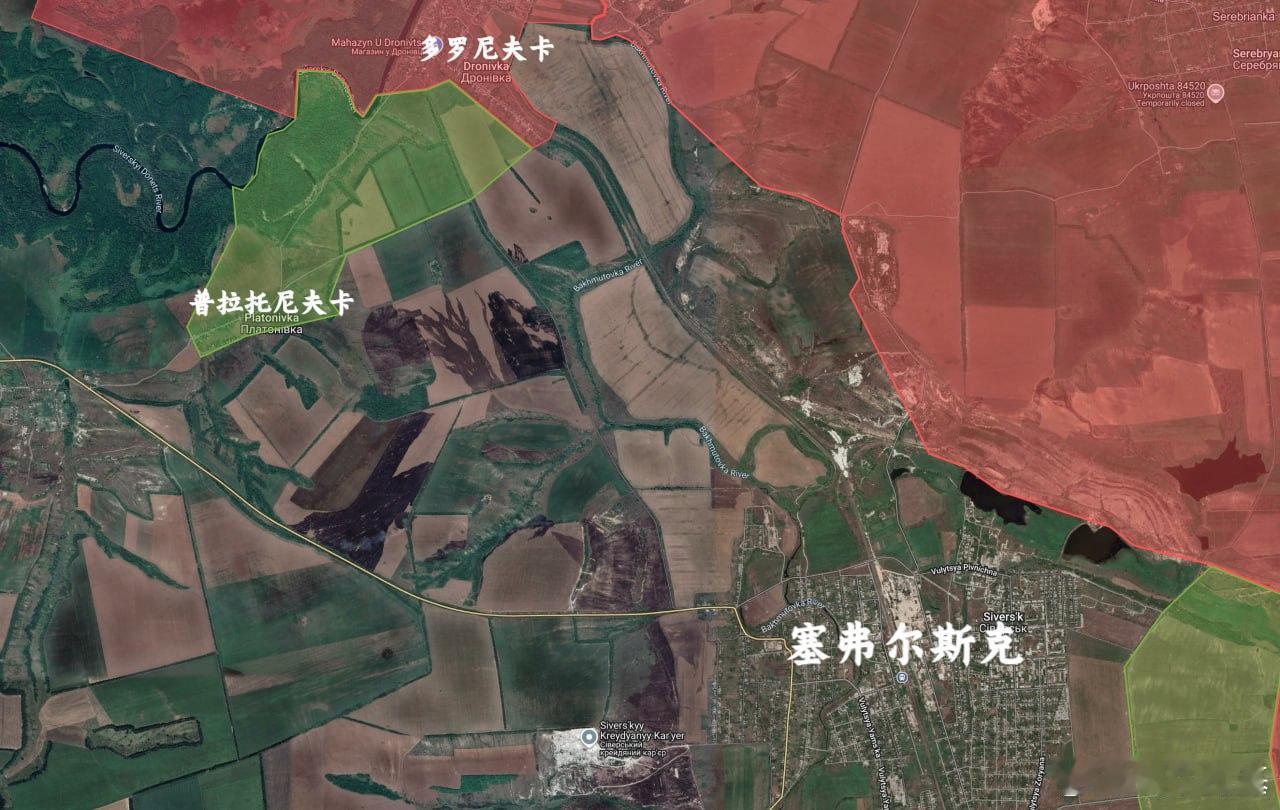 俄军还占领了塞弗尔斯克西北的普拉托尼夫卡,明显是奔着切断塞弗尔斯克的T0513补给线去的来源:Новости СВО и Мира 🇷🇺©、Kalibrated