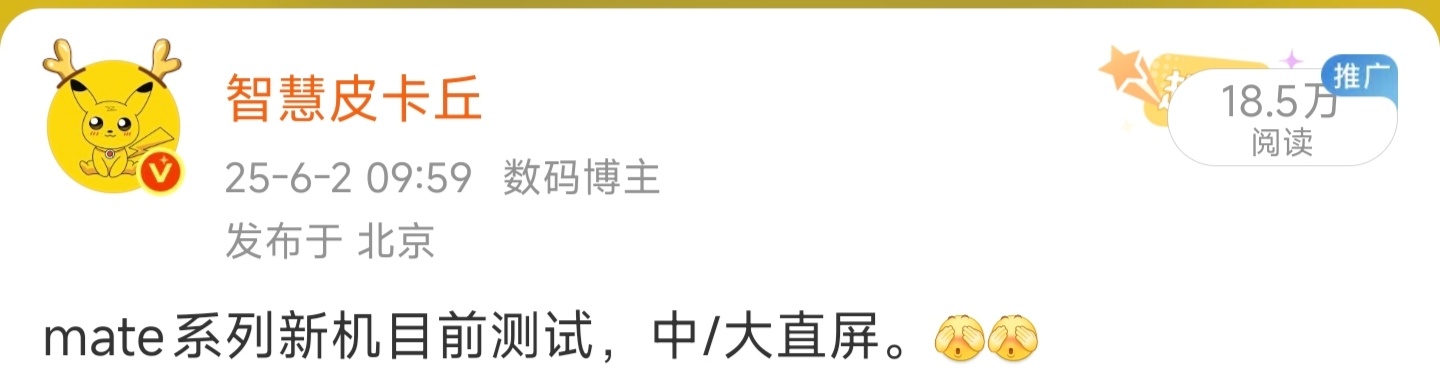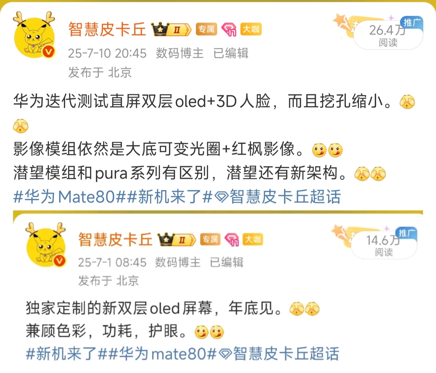 麒麟9030和大家说过是系列化。华为Mate80最终定案直屏盖板,目前只有荣耀超大杯测试等深,感觉可以坚持一下,喜欢等深的用户还是很多的。