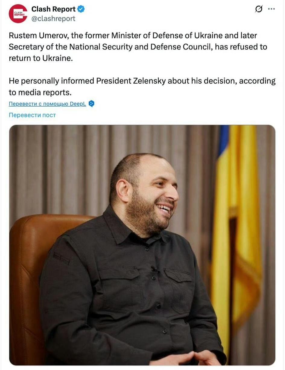 泽连斯基开始树倒猢狲散,继“钱袋子”明季奇出逃之后,国家安全秘书乌梅罗夫利用公出之机滞留不归,这两人已跳出三界外了! 乌梅罗夫此次出访本为重启俄乌战俘交换谈判,他曾宣称双方已达成协议,此次要落实相关事宜。11月12日他发帖称,在土耳其完成换囚谈判相关工作后前往卡塔尔会见该国总理,却未提及返程时间。且他在X平台的更新停留在11月11 日,之后便杳无音信,没有任何换俘会谈取得成果的消息传出。 外界普遍猜测他因卷入腐败案选择滞留不归,他家族在美国拥有8处房产, 其财富与官方收入反差极大,也加重了外界对他存在腐败行为的怀疑。 乌梅罗夫滞留也让本就推进艰难的俄乌战俘交换进程,陷入更多不确定性之中。